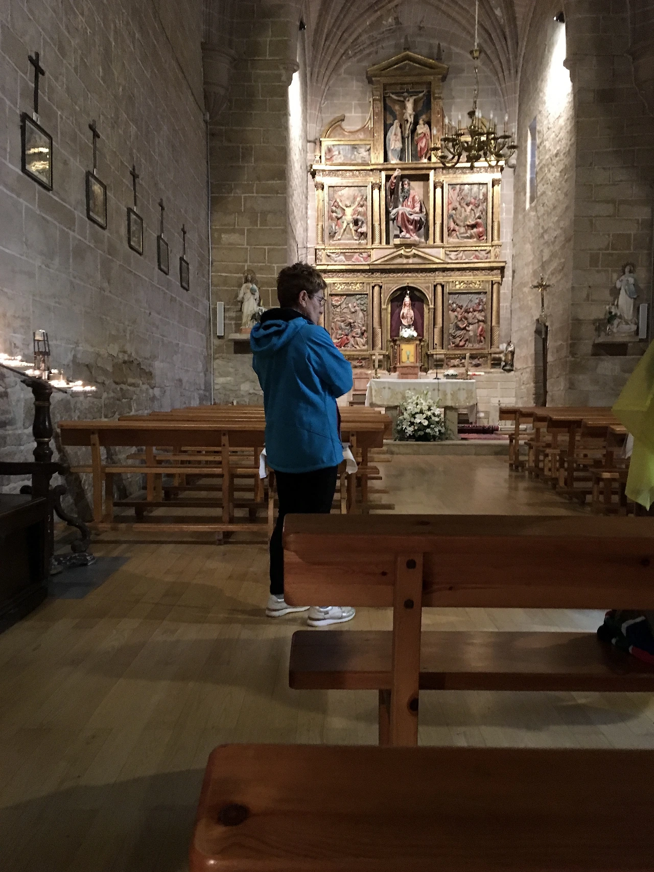 비를 피할 수 있는 곳까지 멈출 수가 없었다. 물도 쉽게 마시지 못하고 걷기만 했다. 이제 정말 쉬고 싶을 때 딱 나타난 성당에 들어갔다. 이미 몇몇 사람들이 성당 안에서 옷을 말리고 있었다. 입구에 신발을 벗어두고 들어가 잠시 비와 추위를 털었다. 어제 물집이 겨우 마르려던 참이었는데 다시 제대로 젖어 원상태가 되었다.