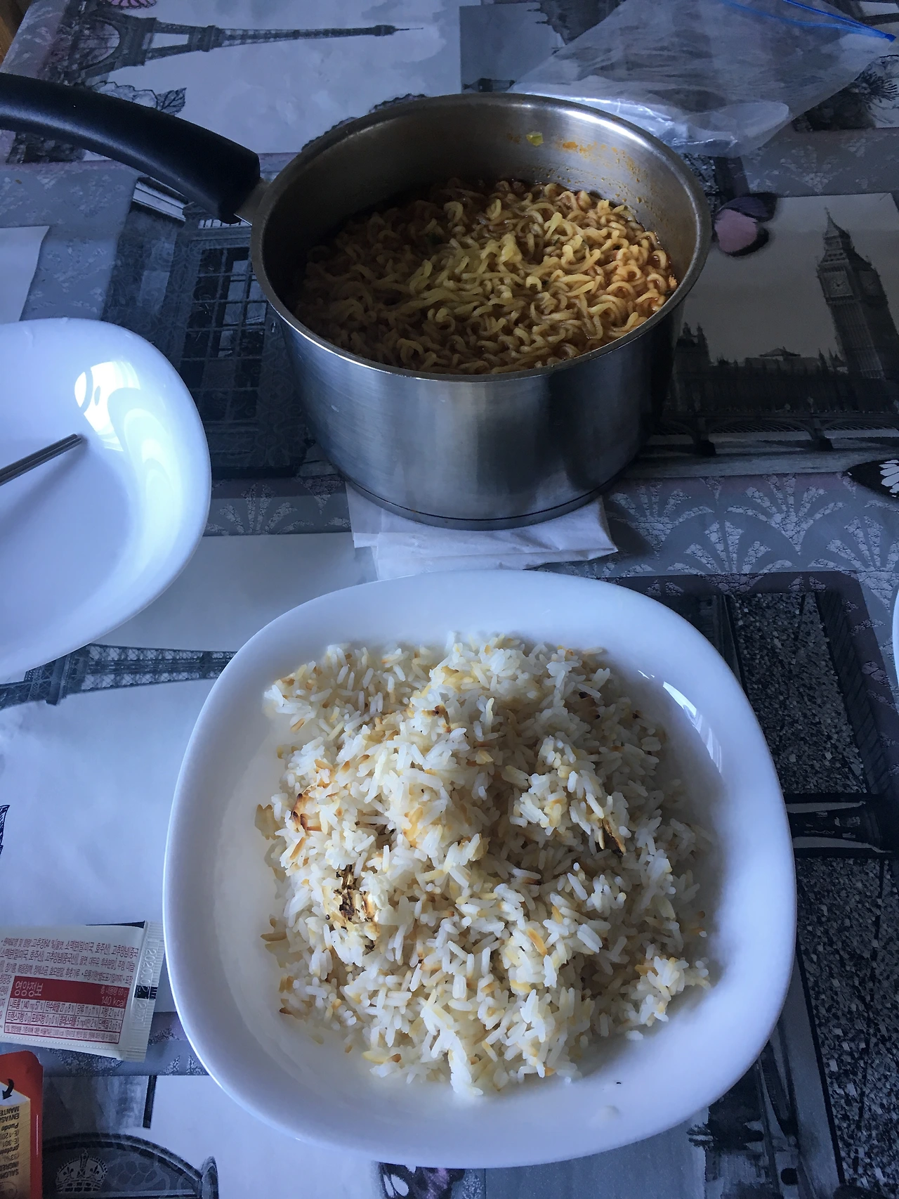 비를 맞았으니 따듯한 국물을 먹는 게 좋을 것 같아 오늘의 저녁은 라면과 밥을 먹기로 했다. 비록 훅 불면 날아가는 가벼운 쌀이었지만 순례길 위에서 얼큰한 라면에 밥까지 먹으니 아주 든든했다.