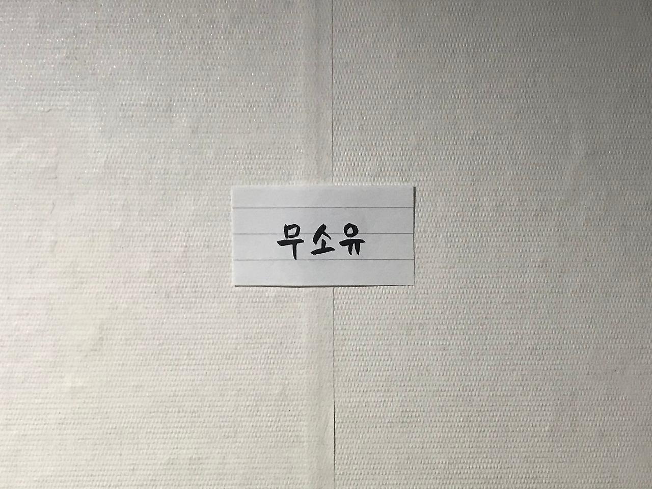 무소유, 나의 하얀 책상 벽 바로 앞에 보이도록 붙여놓은 한 단어다. 불과 몇 개월 전까지만 해도 책상 벽에는 포스트잇이 여러 개 붙어있었다. 아인슈타인이나 릴케, 차미리사 등 지혜롭고도 본받을 만한 사람들의 인용구를 잘 보이도록 덕지덕지 붙여놓았었지만 얼마 전 나는 그것을 모두 떼어냈다. 그리고 텅 빈 벽 중앙에 조그맣게 '무소유'를 적어 붙여놓았다.