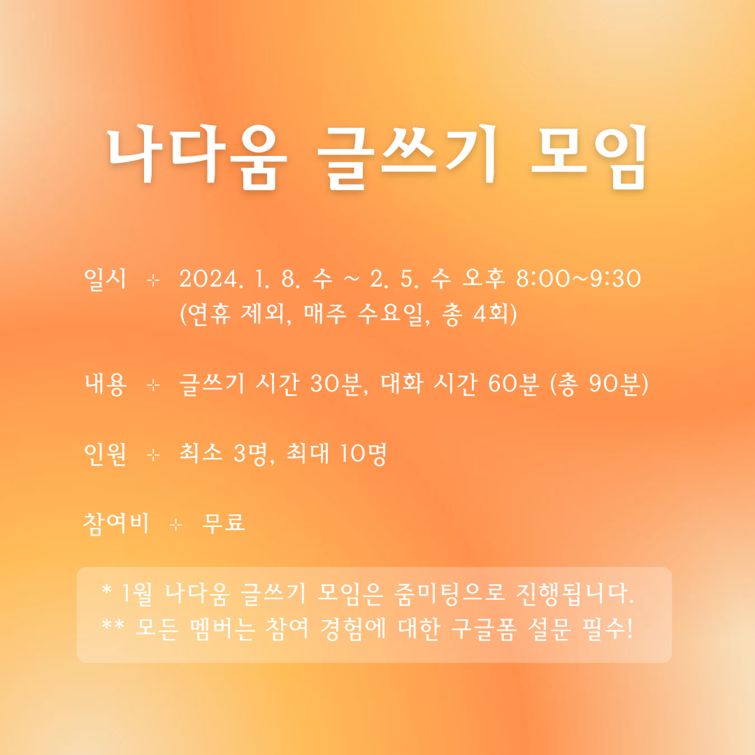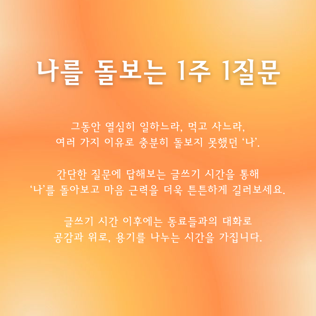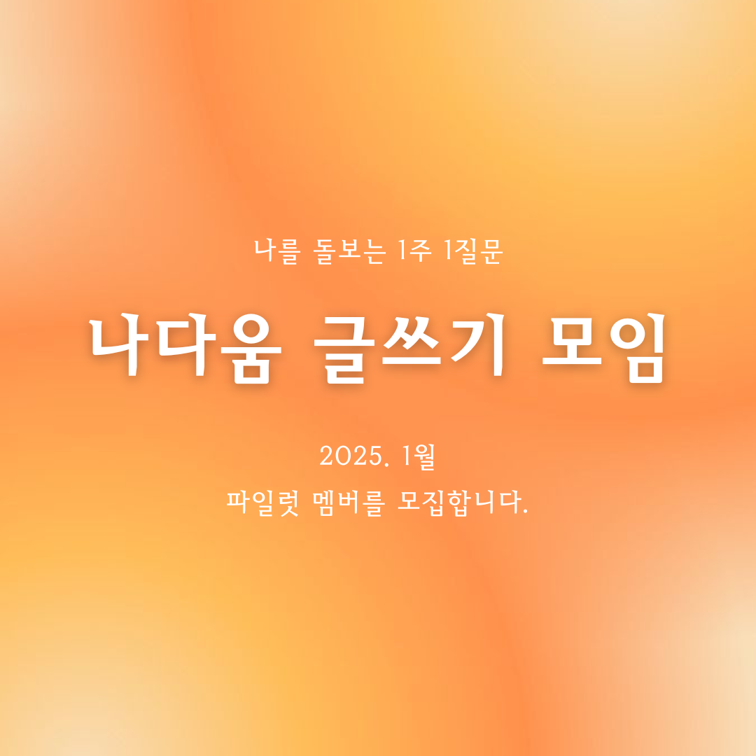 ⊹ 나를 돌보는 1주 1질문, <나다움 글쓰기 모임> 2025년 1월 멤버를 모집합니다. (참여비 무료!)