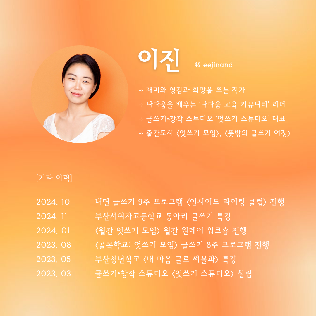 • 내용: 수강비 무료, 탄탄한 커리큘럼, '작가 이진' 역사의 시작, 이후에도 활발한 연계 활동 지속