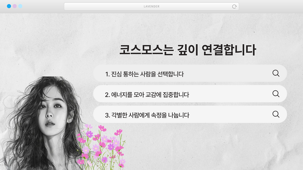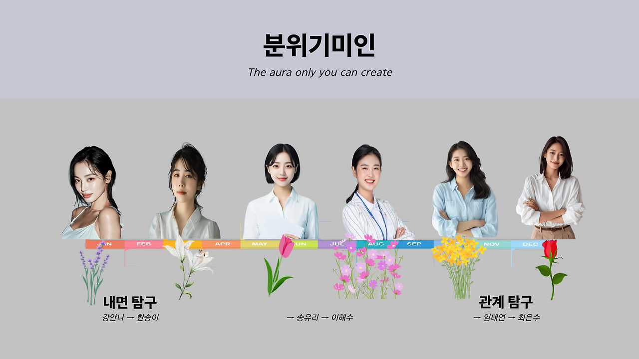이 연재는 분위기내공을 쌓기 위한 저의 수련시간이기도 합니다. 그 과정을 당신과 나누고 싶습니다. 6가지 꽃으로 상징되는 분위기미인들의 이야기 ㅡ 매주 화요일, 함께 읽고 함께 익어가면 좋겠습니다.