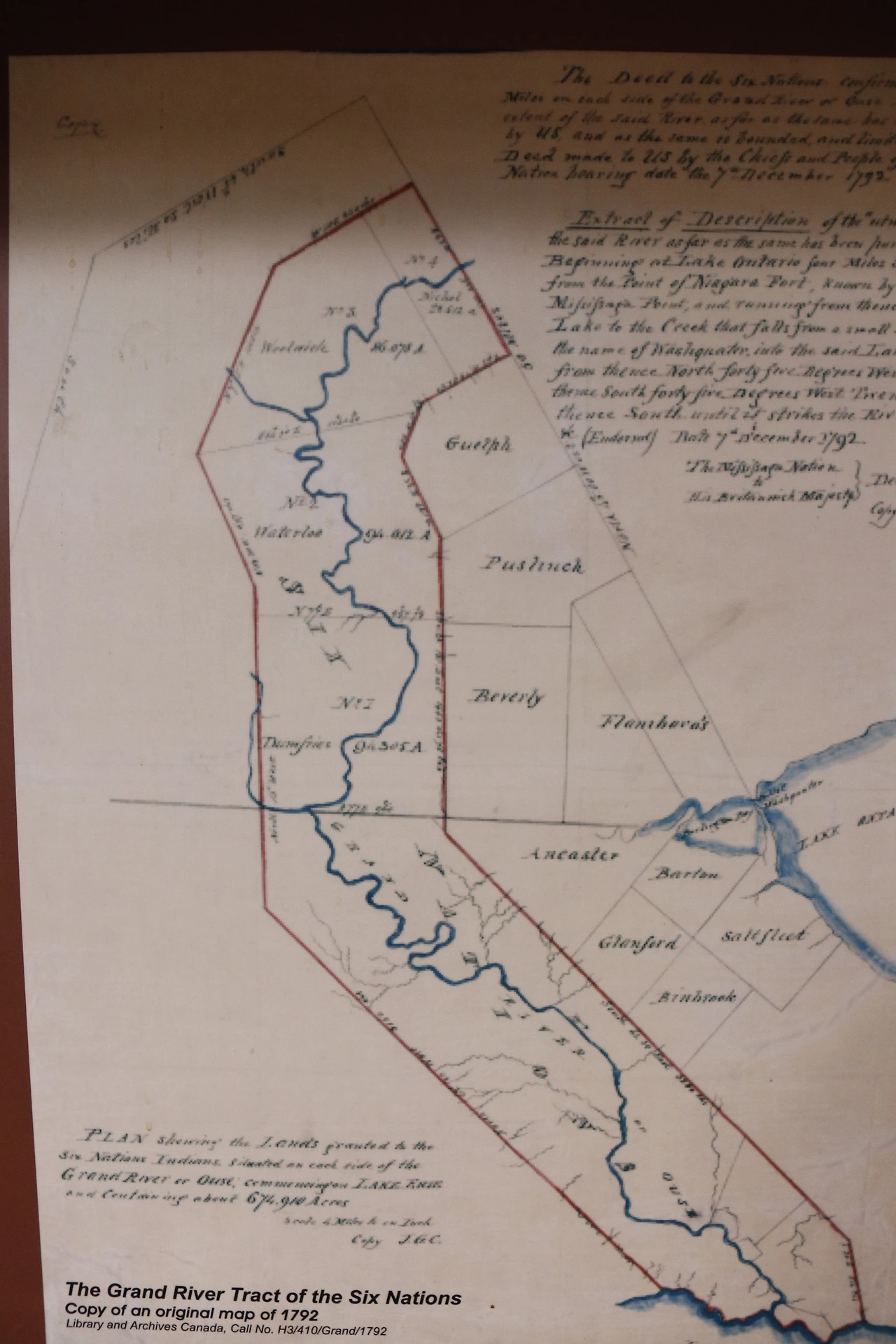 식스 네이션(Six Nations)의 그랜드 리버 영토가 표시된 지도(1792)