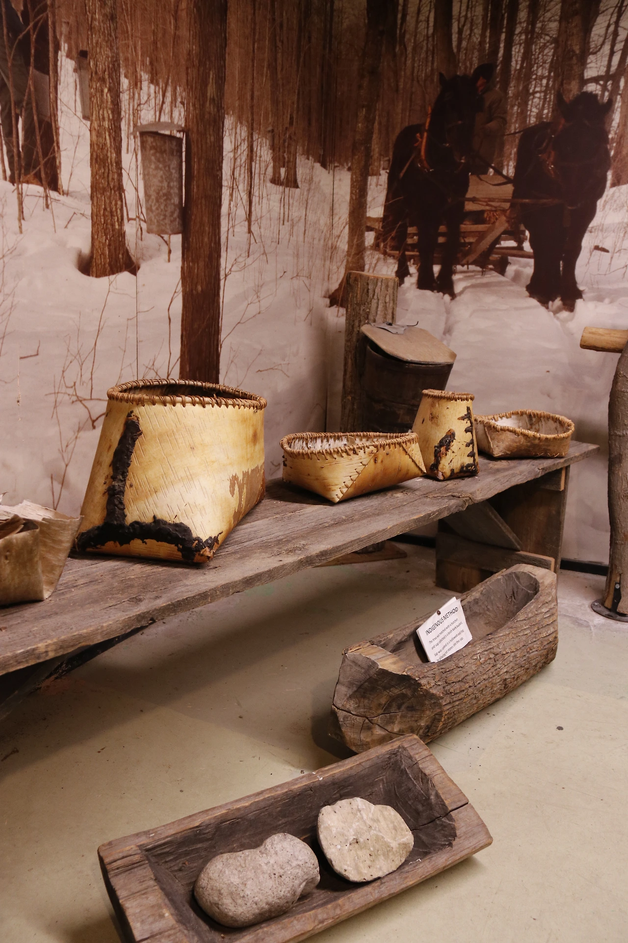 삼나무 껍질로 만든 바구니로도 수액을 담아 메이플 시럽을 만들었다.