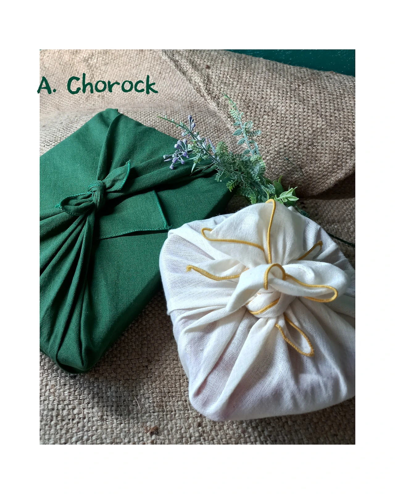 통에 잘 담아 세워서 가져가도록 보자기를 싼다.