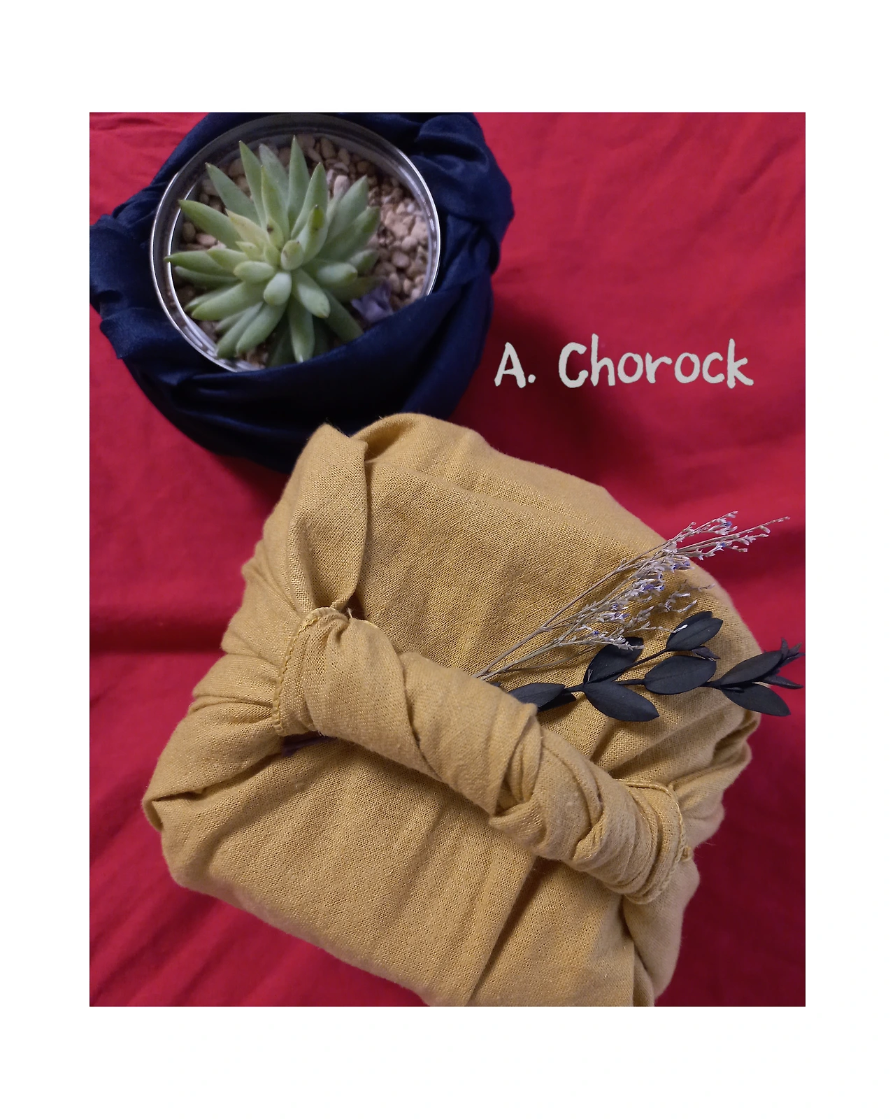 오늘은 겨자색 린넨 보자기에 손잡이까지 만들어 보자기를 싼다.