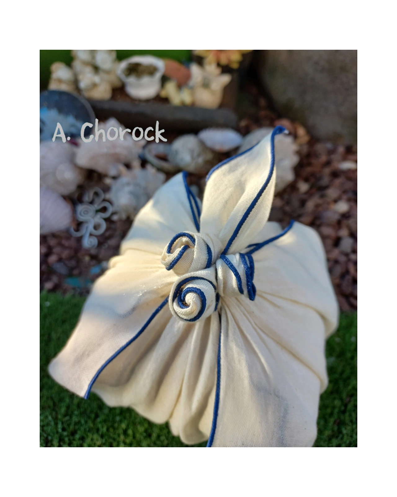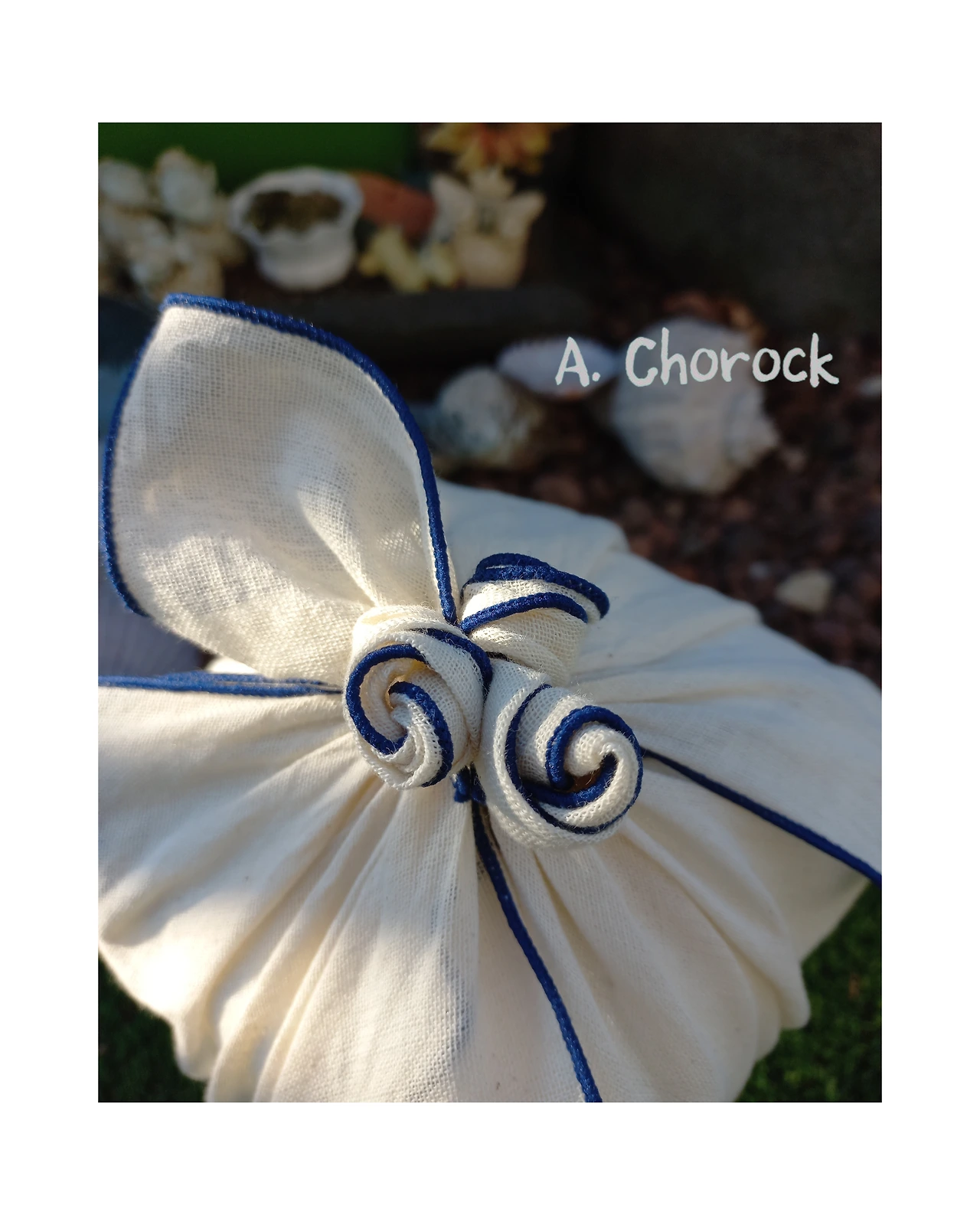 소창 보자기에 장미꽃을 세 송이 만들었다.