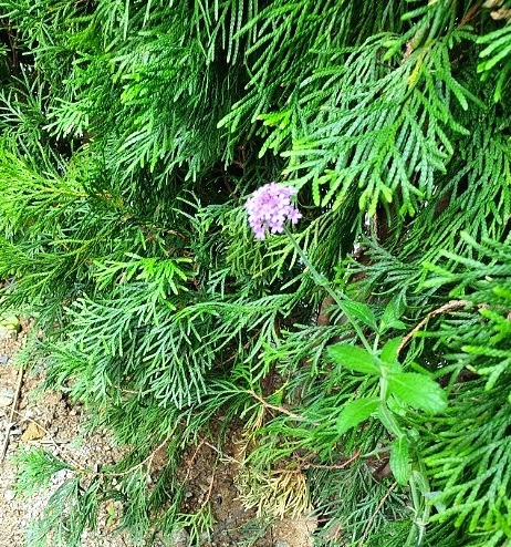 내 보호와 사랑을 받으며 튼튼하고 예쁘게 꽃을 피운 잘 자란 꽃밭의 꽃들을 보며 흐뭇해하고 있을 동안, 눈에 안 띄는 구석에서 에메랄드그린에 가려서 볕도 충분이 못 쬐고, 물도 충분히 못 먹었을 그 야생화가 어느 날 보라색 꽃 얼굴을 내밀며 건재함을 자랑했다.