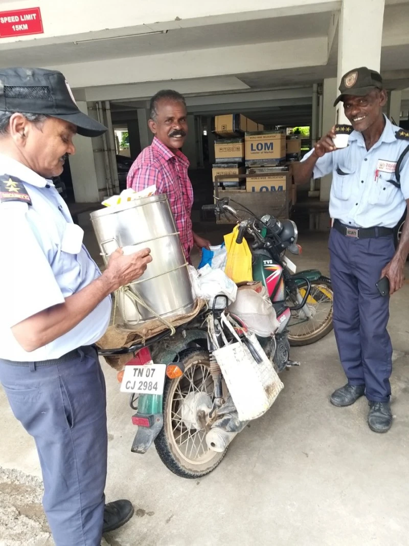 아파트 경비 아저씨와 자전거 짜이 장수, 동네 어귀의 짜이 장수와 코코넛 장수 아저씨. 사진을 찍을 때 늘 차렷자세를 하는 인도인들이다.