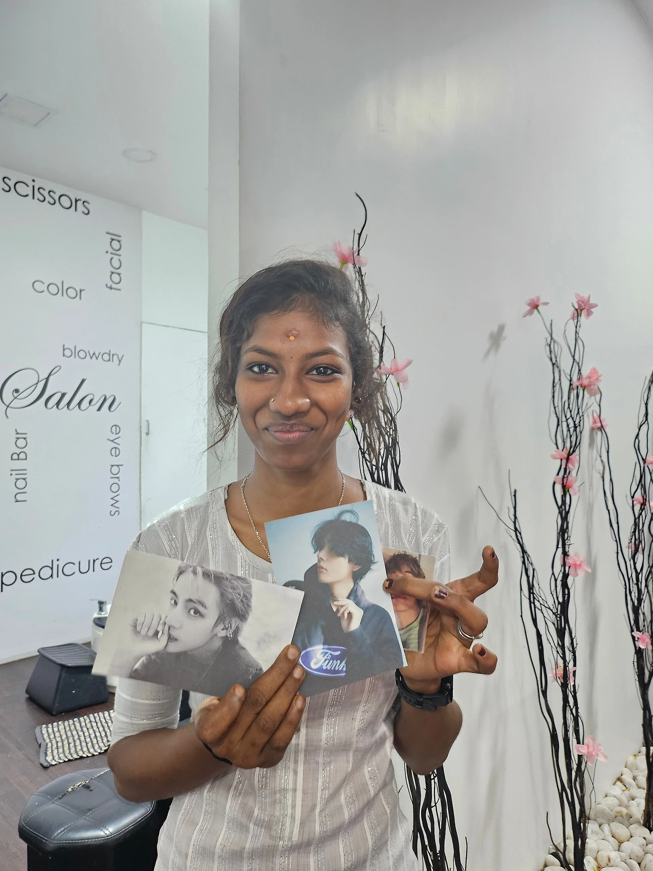 동네 단골 미용실의 BTS 팬이라는 미용 견습생 소녀. 남한에서 왔다고 하나까 눈을 반짝이며 BTS 봤냐고 묻던 순박한 그 아이에게 뷔 사진을 구해줬다.