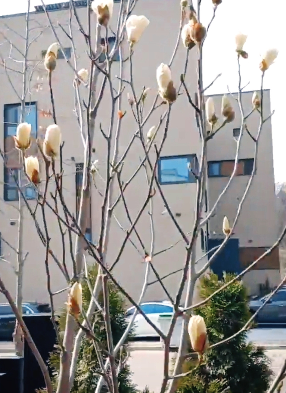작은딸이 사진 한 장을 보내왔다. 한국 우리 집 화단의 목련나무 사진이었다.