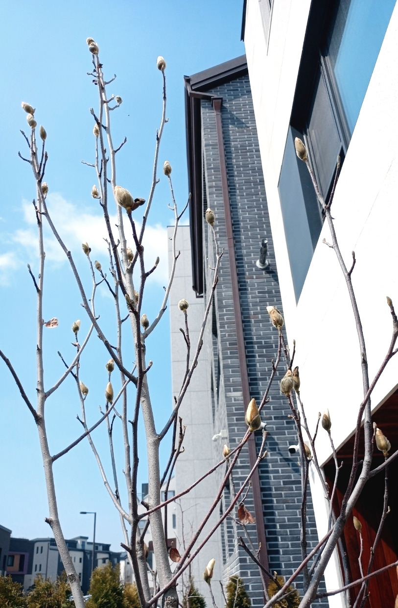 그렇게 네 그루의 나무가 우리 집 미니 정원에 심겼는데 여름, 가을, 겨울이 지나고 제일 먼저 목련나무에 꽃망울이 달린 것이다. 우리 집에서 달린 첫 꽃망울이다.