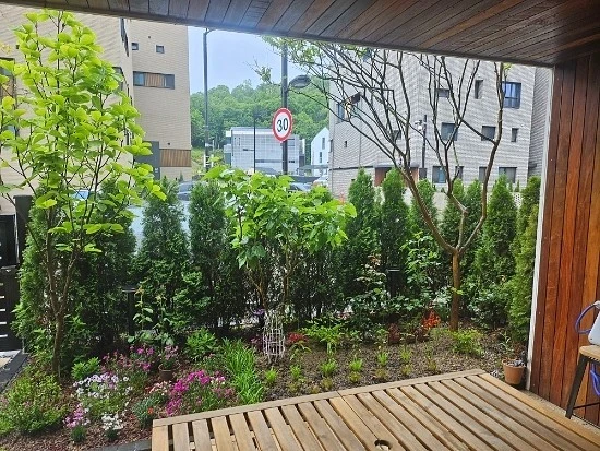 현재 내 3평 정원 모습(큰 배롱나무를 심었고, 고추, 상추도 기르는 중이다.)⬇️