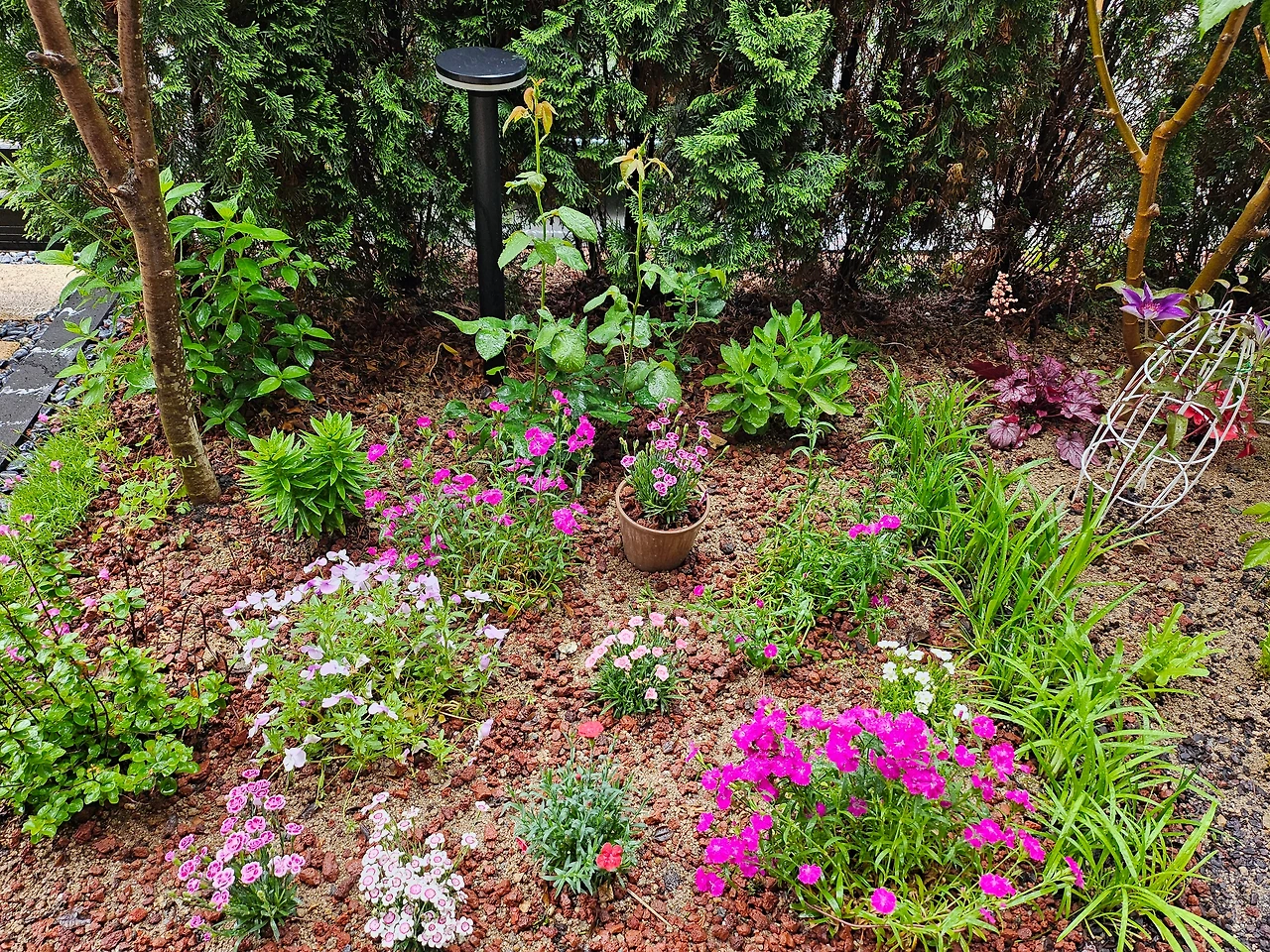 큰 '배롱나무'를 심었고, 작은 '패랭이'들을 더 심었고, '큰꽃으아리'도 한그루 심었다.