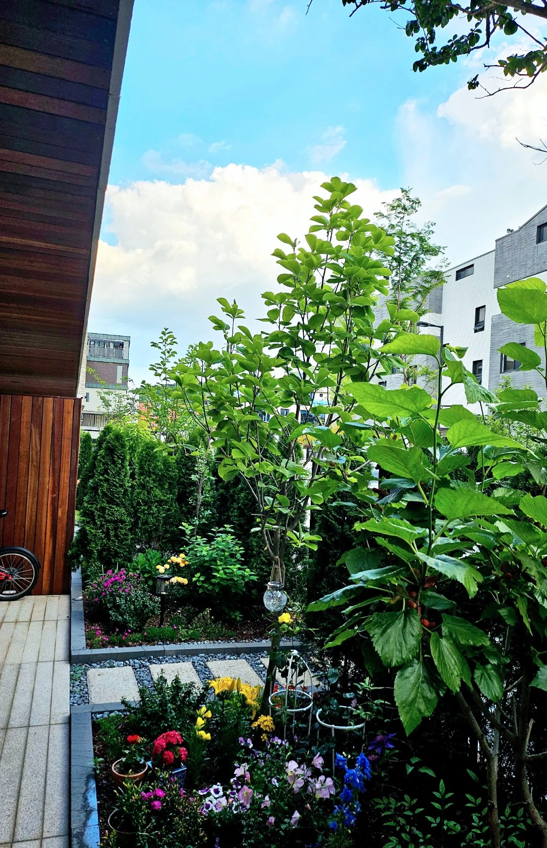 아파트에 살 때는 아파트가격의 오르내리는 숫자가 신경이 쓰였다면, 주택에 살고 보니 내 작은 정원에 피고 있는 꽃잎의 개수에 관심이 집중되고 있고, 어떤 새, 어떤 나비와 벌이 오가는지가 더 궁금해졌다.