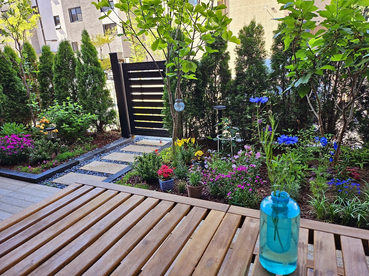 아파트에 살 때는 예쁜 카페에 앉아있는 시간이 좋았다면, 주택에 살고부터는 내 정원의 작은 테이블만으로도 충분하다. 오히려 더 좋다.