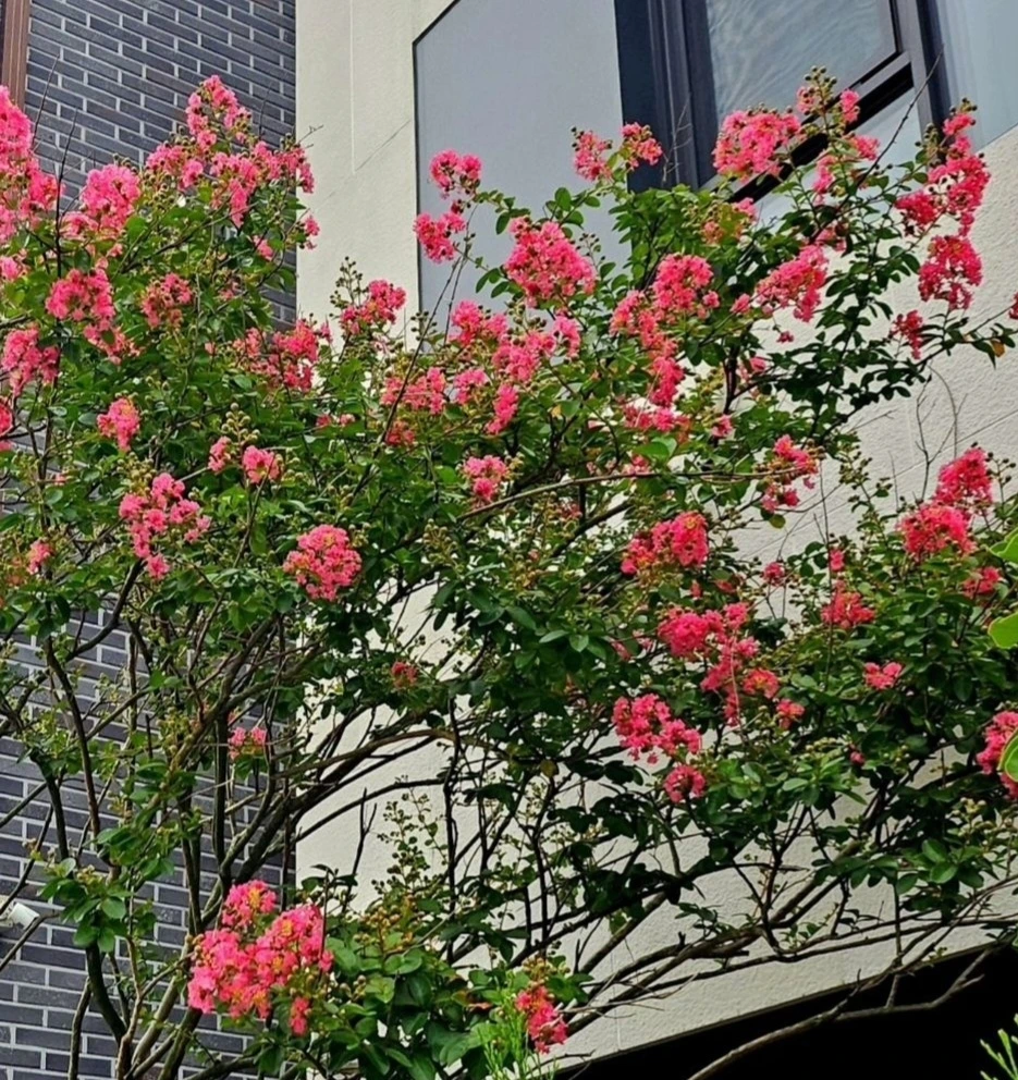 작은 정원에 어울리지 않을 것 같았던 제법 큰 백일홍 나무를 심었다. 동생집 나무를 보고 예뻐서 무리를 해서 가져다 심었는데 제법 잘 어울렸다.
