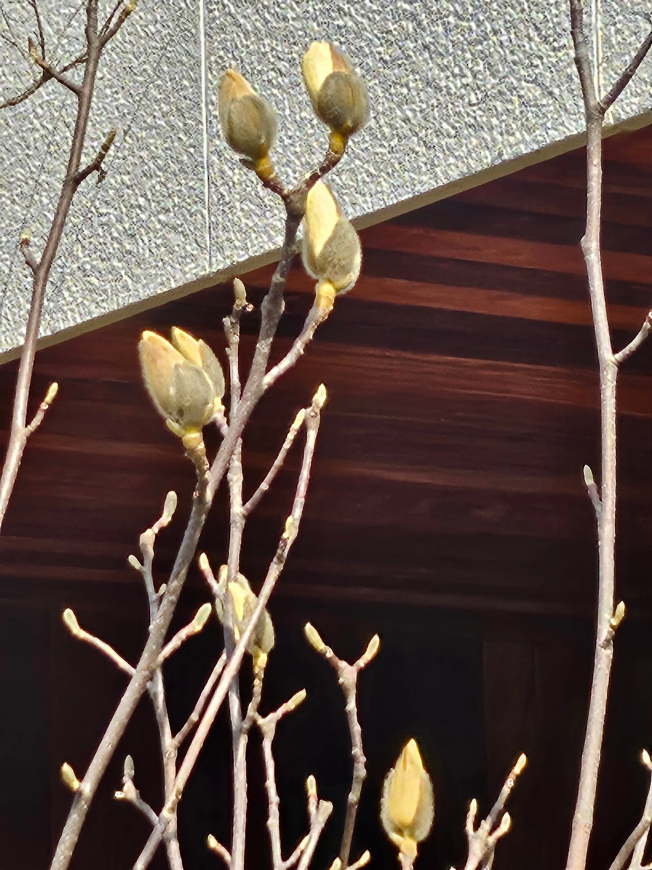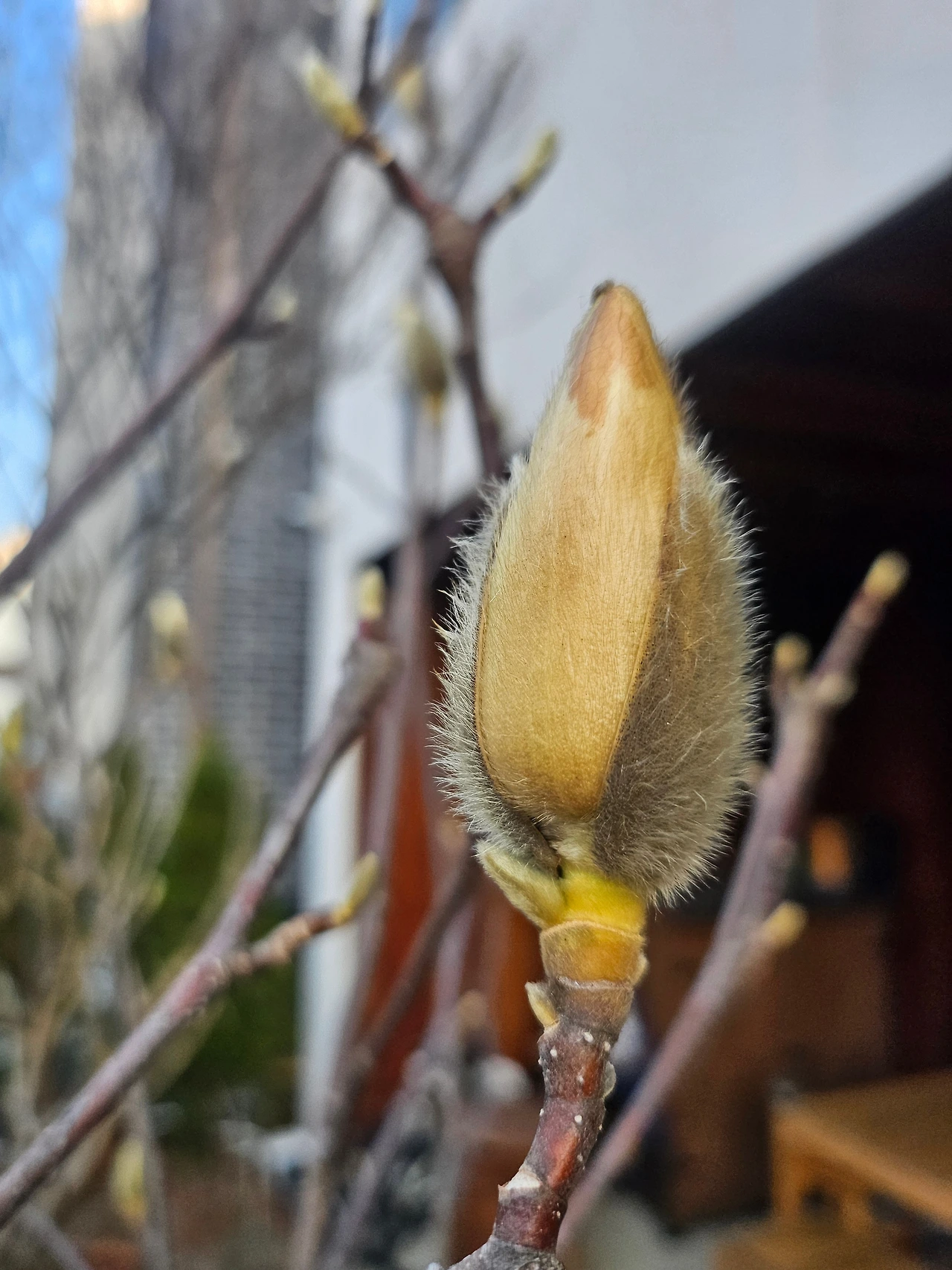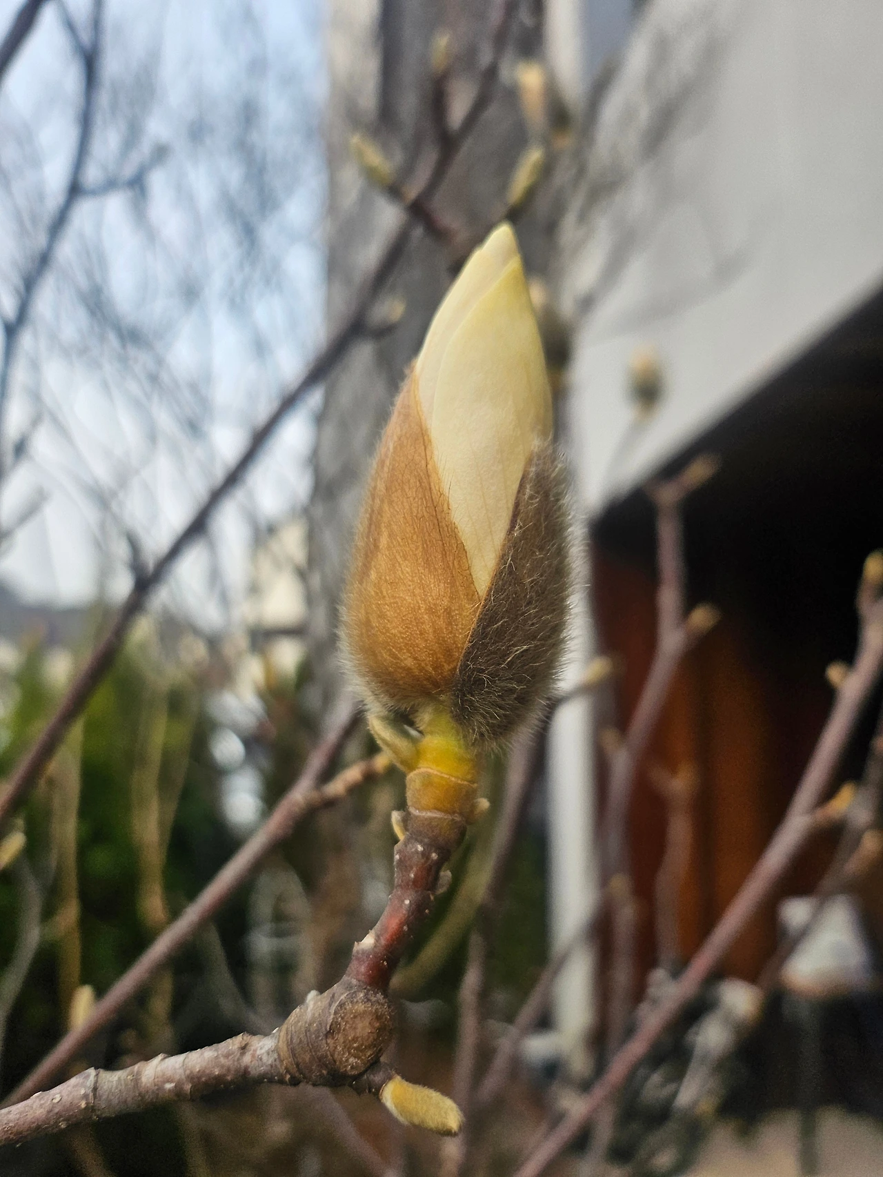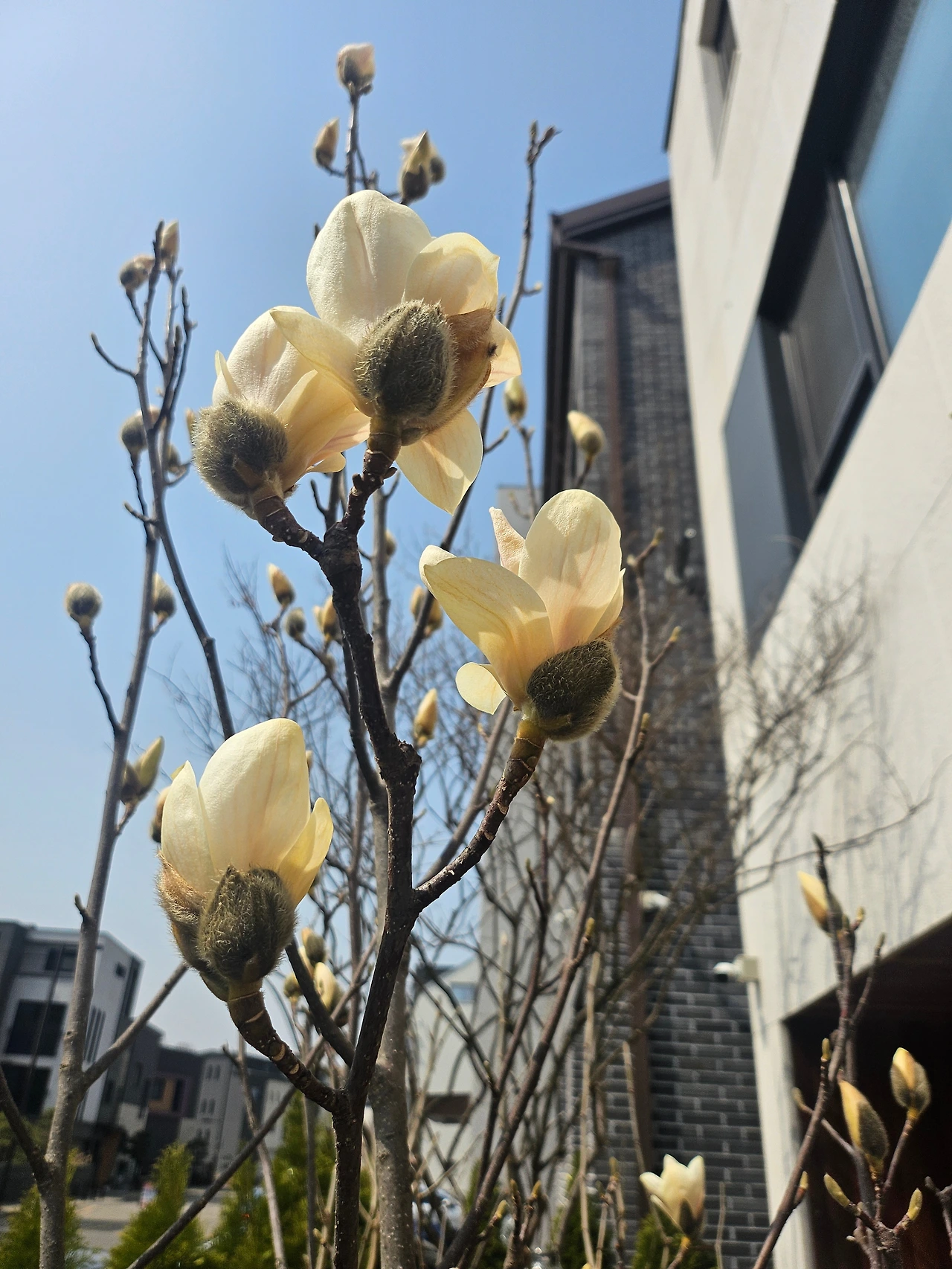 옆집, 윗집 정원에도 목련나무가 있지만, 그 두 집은 아직 한겨울처럼 겨울꽃눈이 꽁꽁 감싸져 있는데, 신기하게 우리 집 목련만 유독 급한 일이라도 있는 듯이, 중요한 일이라도 있는 듯이, 그래야만 하는 이유라도 있는 듯이 부지런히 꽃망울을 터뜨려주었다.