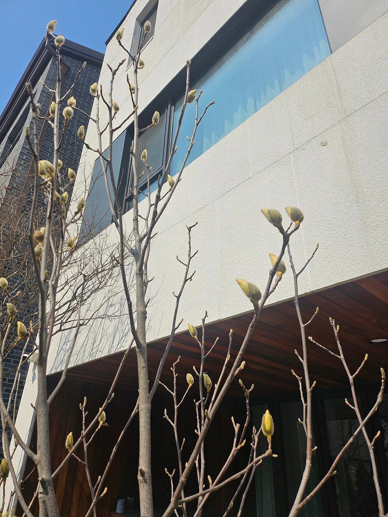 주택으로 이사를 온 뒤로, 주방 유리문 너머 대문옆 목련나무는 아침에 눈을 뜨면 가장 먼저 보이는 나무이다. 하루의 시작을 기분 좋게 해주는 나무가 되었다.