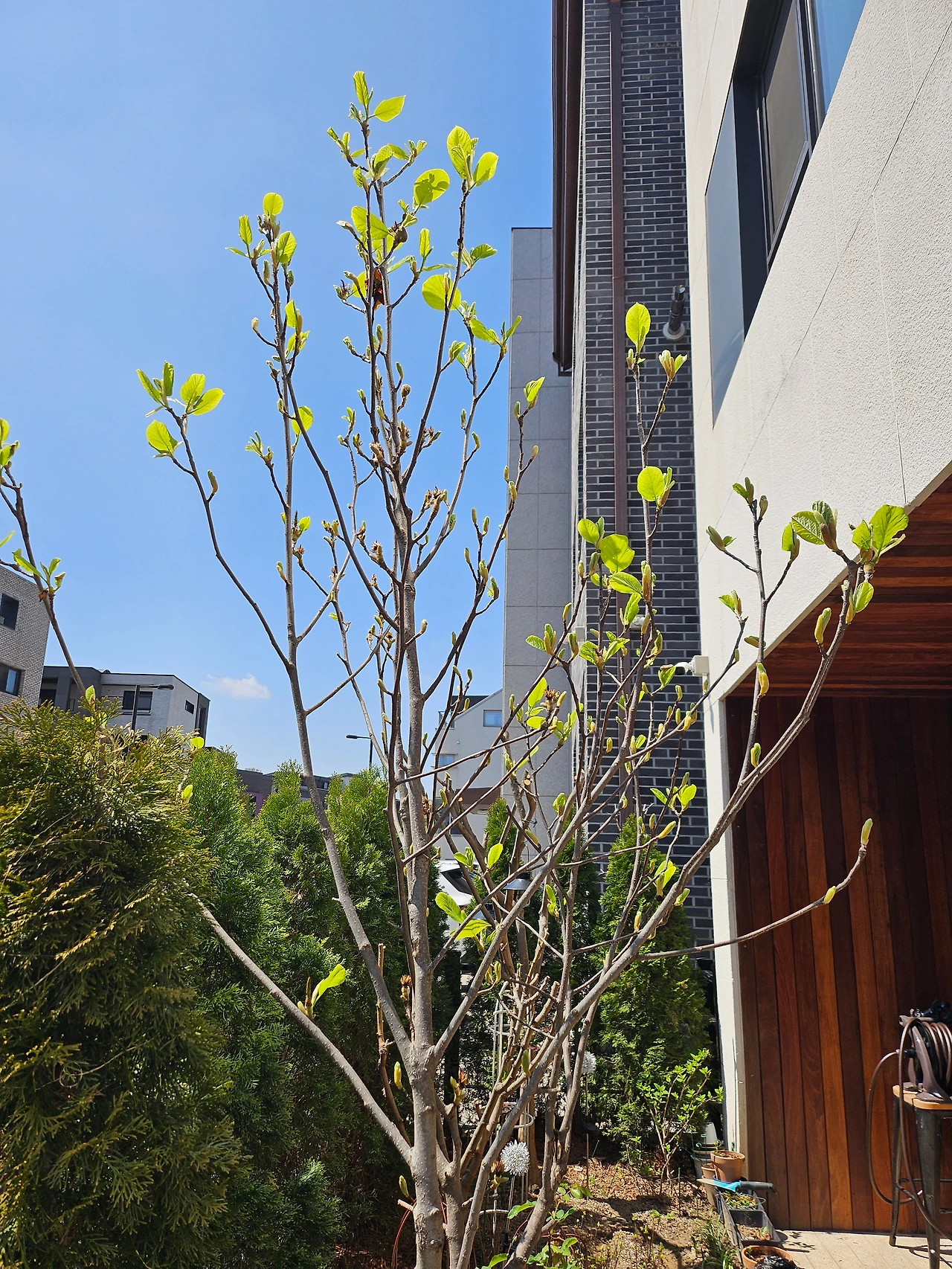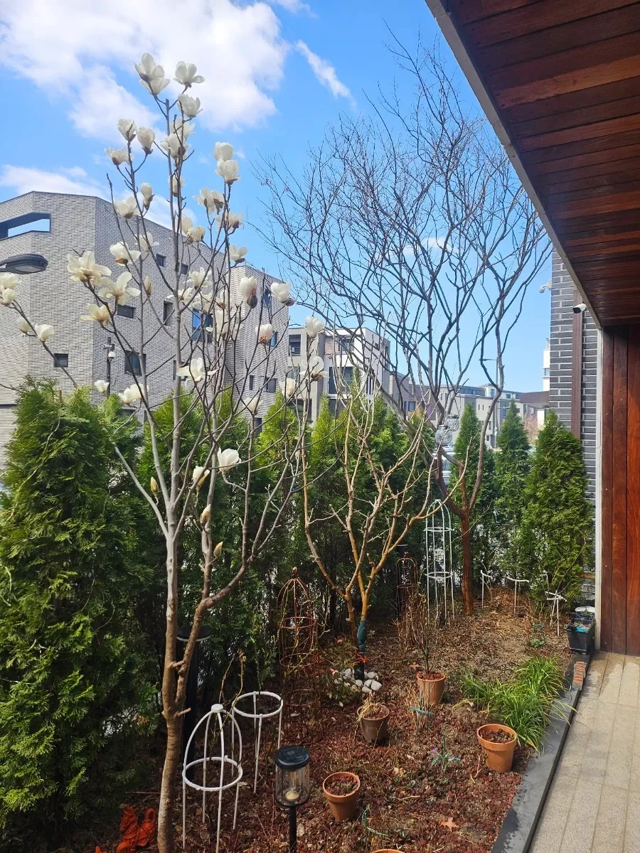 이사 오기 전부터 이 나무는 내 정원에 꼭 심겠다고, 아무리 정원이 작아도 심고야 말겠다고 다짐을 한 나무가 있었다. 이른 봄에 하얗고 큰 꽃이 피는 목련 나무이다.