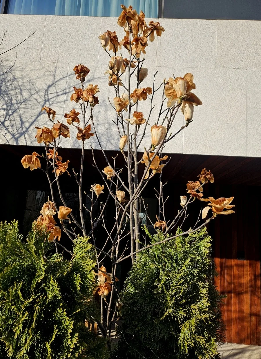 곧 4월인데 갑자기 눈이 내리더니, 기온이 영하로 떨어진 날이 있었다. 눈 덮인 내 목련꽃은 속수무책으로 영하의 기온에 얼어버리고 말았다. 만개해서 한창 예쁜 때에 그렇게 되고 말았다.
