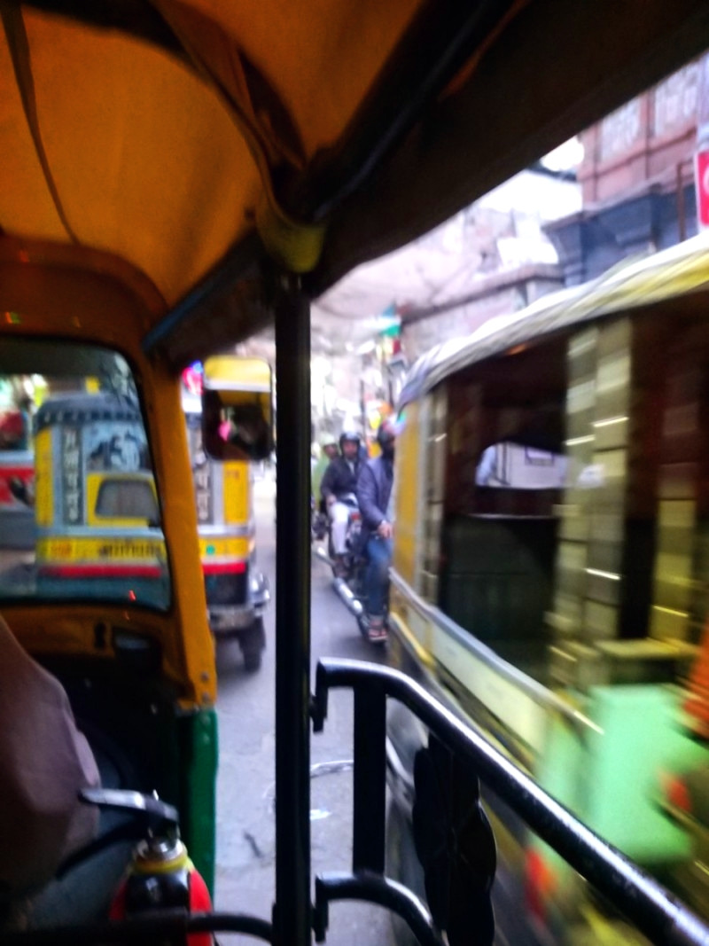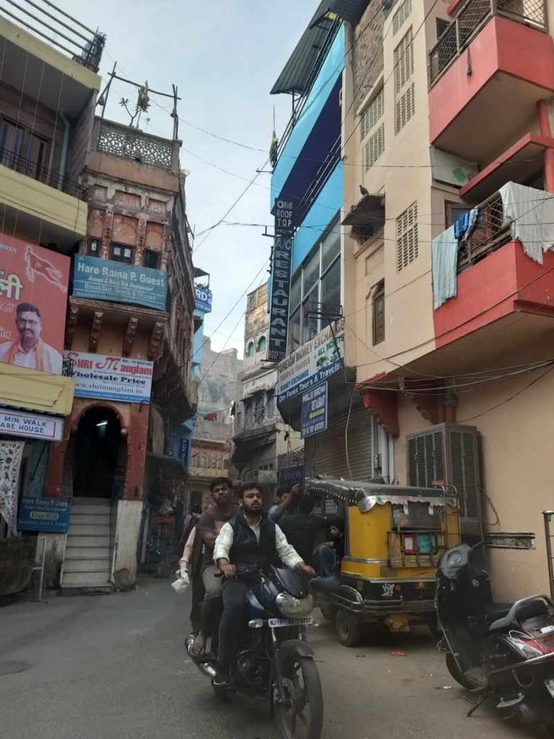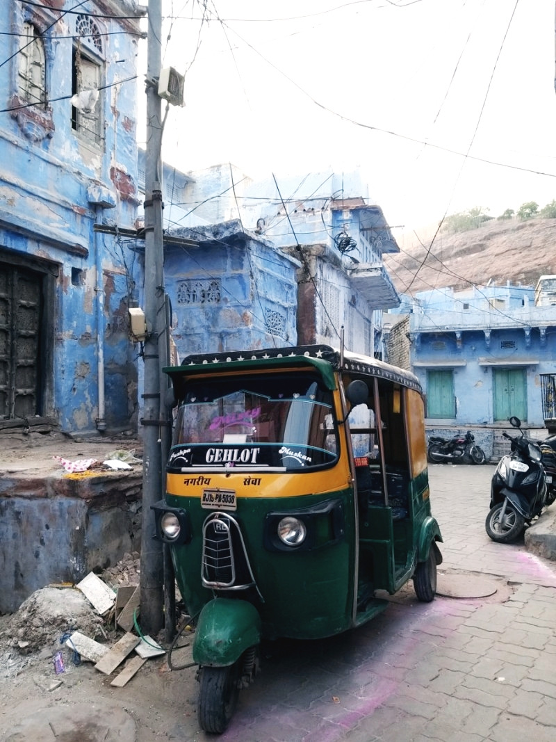 셋이서 오토릭샤에 올라탔다. 퇴근시간대의 조드푸르 시내의 교통 체증은 대도시 첸나이는 명함도 못 내밀 정도였다. 5분이면 될 거리를 좁은 골목길을 빠져나가는데 30분이나 걸렸다. 걸어가는 게 더 빠를 시간대였다. 마주오는 오토바이와 오토릭샤와 사람과 소를 피해서 아슬아슬 묘기를 부리며 우리가 탄 툭툭이 골목을 겨우 빠져나왔다. 체증보다 경적소리와 매연을 견디는 것이 더 큰 일이었다.