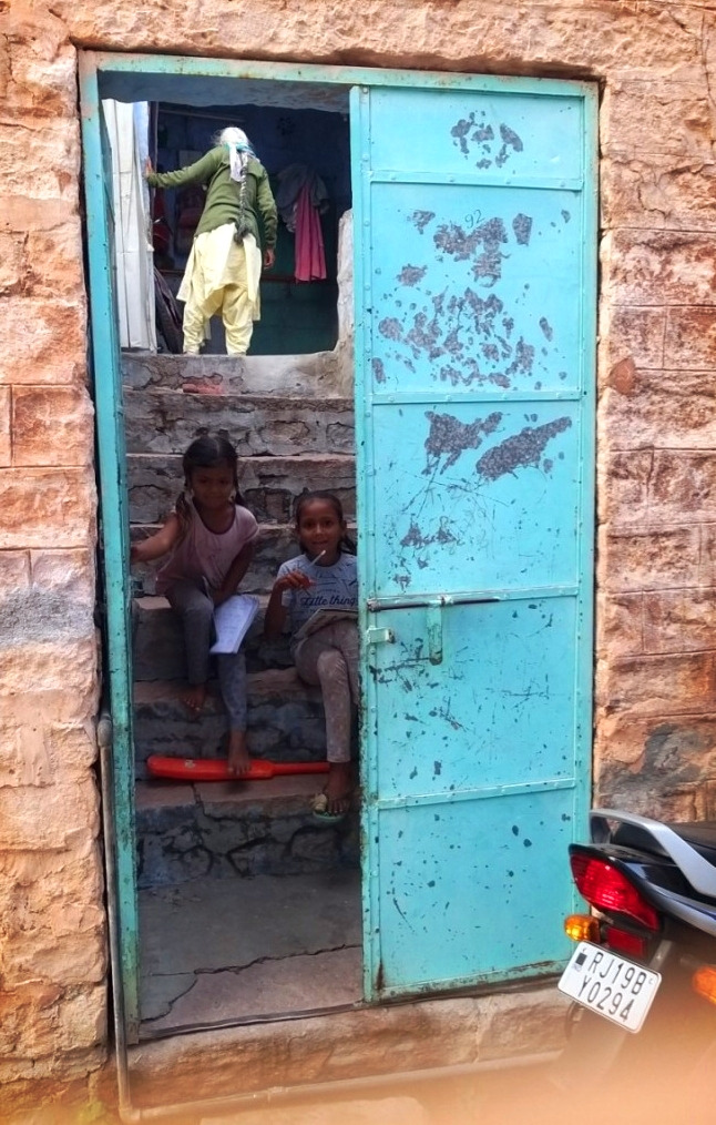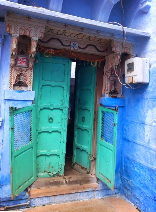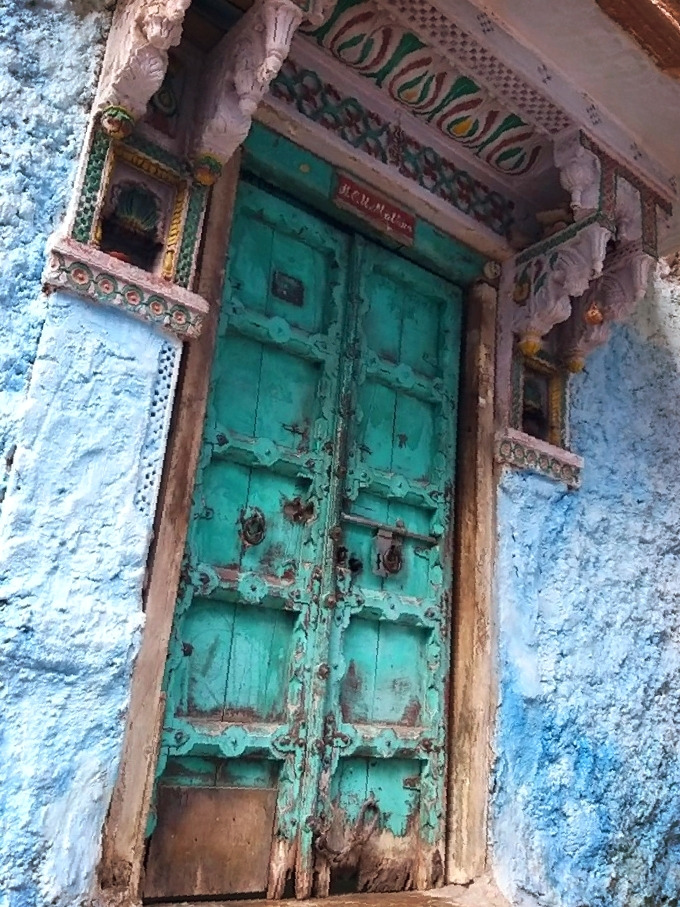 인도의 집들은 문이 참 예쁘다. 첸나이에서도 그랬고, 인도 다른 지역 여행 중에도 예쁘고 특이한 문들에 눈길이 많이 갔었다. 블루시티에서도 주택의 문들에 관심이 갔다. 비록 낡고 칠도 많이 벗겨졌지만 모양도 색상도 다른, 집집마다 개성 있는 문들은 구경하는 재미가 있었다. 문 너머에 살고 있을 그 집 사람들을 상상하게 만들었다.
