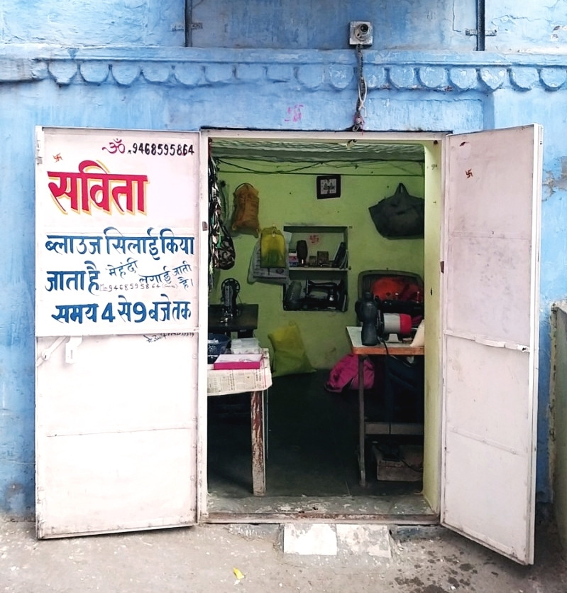 뜻을 알 수 없는 그림 같은 힌디어가 기둥 양쪽에 빼곡히 적힌 구멍가게에는 형형색색 과자들이 주렁주렁 매달렸고, 전화번호와 가격으로 추정되는 숫자가 적힌 나무문을 활짝 연 수선집의 재봉틀은 사리천 재단이나 바짓단 수선을 기다리고 있었다.
