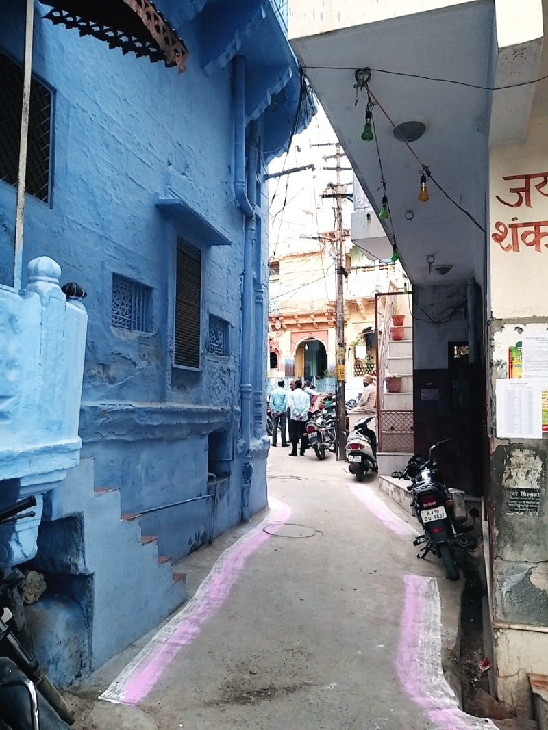 이제는 슬럼화가 되어가고 있는 그 동네는 여전히 대부분의 집들이 파란색 페인트로 칠해져 있었다. 브라만들을 따라서 다른 계급들도 칠하던 파란색이 이제는 차츰 핑크색으로 바뀌는 집들이 많다고 했다. 색깔로 구분되던 그 브라만들이 이제는 많이 남아있지도 않고 가난한 사람들이 모여드는 동네가 되어버린 이유라고 했다.