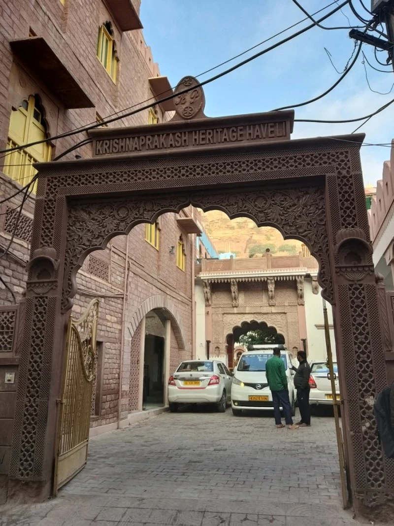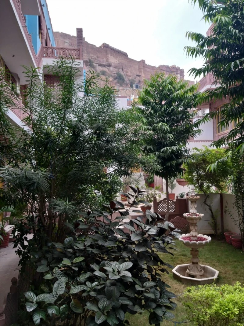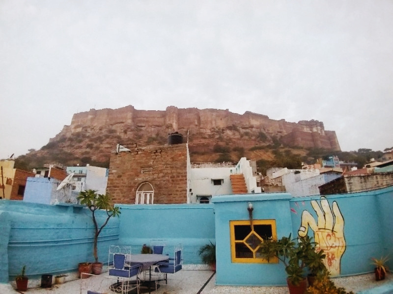 호텔 문을 들어서는 순간 지겹던 도로 위의 시간도, 혼잡하던 시내도 모두 잊혔다. 과거의 인도 어느 브라만의 가정집을 개조한 특이하고 재미있는 호텔은 우리 마음에 쏙 들었다. 1박에 4만 원 정도였던 3성급 호텔은 고급스러운 현대식 호텔은 아니었지만, 그래서 더 마음에 드는 곳이었다. 블루시티 마을 안에 위치한 호텔은 내가 본 가장 웅장한 성인 '메헤랑가르 성'이 눈앞에 병풍처럼 펼쳐져 있는 곳이었다.