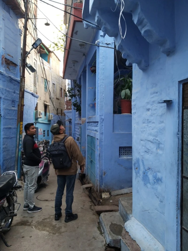 호텔에 부탁해서 소개받은 가이드와 함께 블루시티를 걸어 다녀보는 일이 조드푸르에서의 우리의 첫 일정이었다. 복잡한 골목의 슬럼가 동네를 우리끼리 다니기엔 무리가 있어 보였고, 자칫 길이라도 잃어버리면 낭패가 아닐까 싶어서 그 동네 청년 한 명과 함께 골목을 걸었다. 블루 시티에 관한 흥미로운 설명도 해주고, 사진도 찍어주며 그 청년은 외국인 관광객인 우리에게 최선의 가이드를 해 주었다.