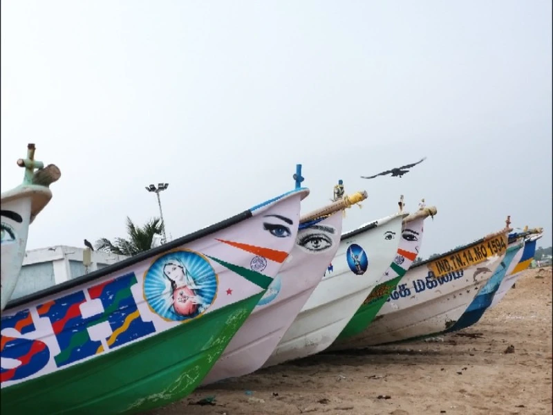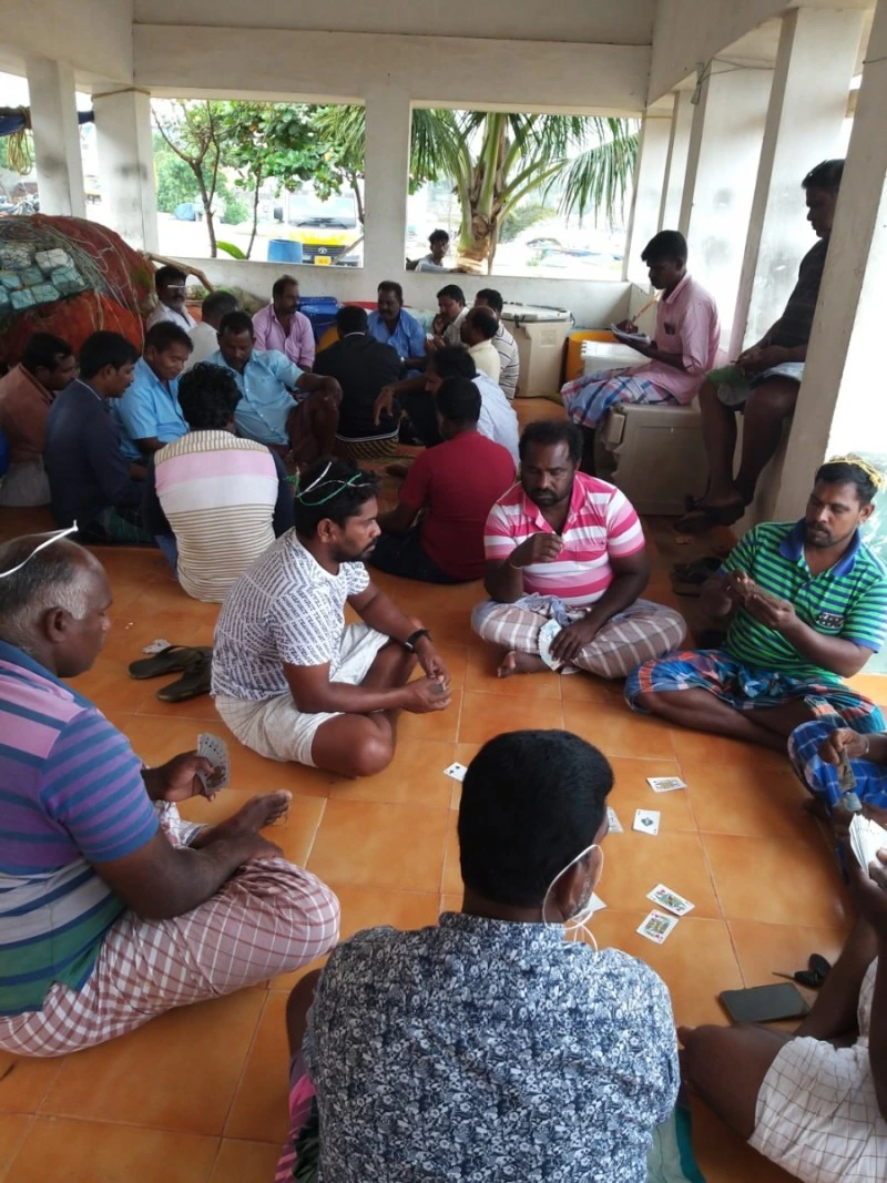 정신을 차리고 내가 있는 공간을 둘러보았다. 날씨 때문에 고기잡이를 포기한 어부들이 삼삼오오 모여 앉아서 카드놀이를 하고 있었다. 그 많은 인도 사람들, 인도 남자들 사이에 여자는 나 혼자였다. 카드놀이에 심취해 있어서 낯선 외국 여자가 그곳에 와있는 것도 모르는 눈치였다. 그러다가 한 사람과 눈이 마주쳤다. 인도 남자들만 가득한 그 공간이 그 순간 나도 모르게 움찔 긴장을 하게 만들었다. 많은 사람들이 오가는 시장 골목과는 다른 공기로 다가왔다. 그런데 그 남자, " 비가 많이 오죠? 비 피해서 잘 들어왔어요" 라며 유독 하얀 치아를 한껏 드러내며 말을 건넸다. 순간 경계심이 풀렸다. 나도 웃으며 "땡큐!"라고 대답했다. 괜히 긴장했던 내가 미안했다. 정신을 차리고 생각해 보니까 그 남자가 한 말은 영어가 아니었다. 타밀어였다. 그런데 나는 그 말을 다 알아 들었다. 말을 알아들은 것이 아니라 그렇게 말하는 것 같은 그 마음을 읽었다. 친절하고 순박한 어부 아저씨들이었다.