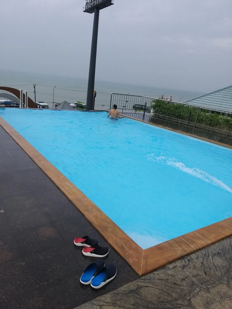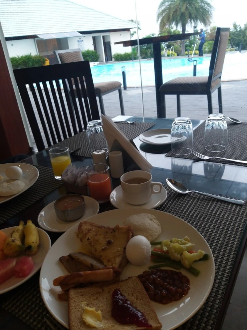 좀 전의 세상과는 완전 다른 세상으로 들어왔다. 시끄럽지 않고, 깨끗한, 아무도 없는 호텔 야외 수영장에서 벵골만인지, 인도양인지, 대서양인지 모를, 세 바닷물이 합쳐진다는 그 바다를 바라보며 둘이서 물놀이를 하며 시간을 보냈다. 바다가 바로 내려다 보이는 멋진 수영장을 우리만 즐기고 있었다.