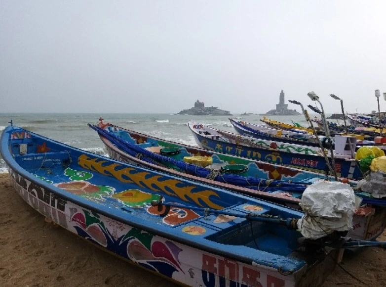 그들에게 성스러운 섬, 신발을 벗어서 맡겨야 했다. 땡볕에 돌섬을 걷다가는 발바닥에 화상을 입지 않을까 싶은 남인도의 태양인데, 흐린 날씨가 오히려 고마웠다. 날씨 때문에 일몰도 일출도 못 봤지만, 바람이 세서 배가 못 뜰까 걱정이었지만, 그 날씨 덕분에 맨발로 땀 한 방울 안 흘리고 돌섬을 구경할 수 있었다.
