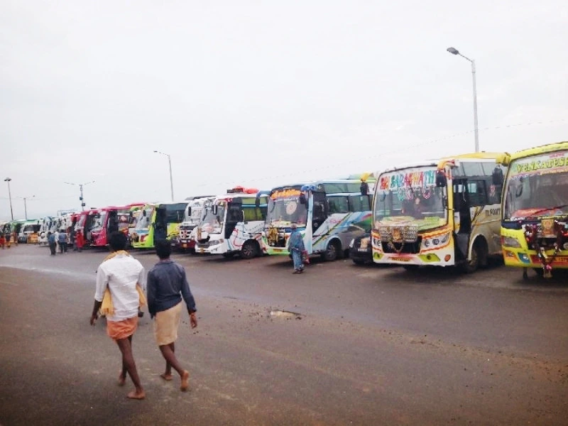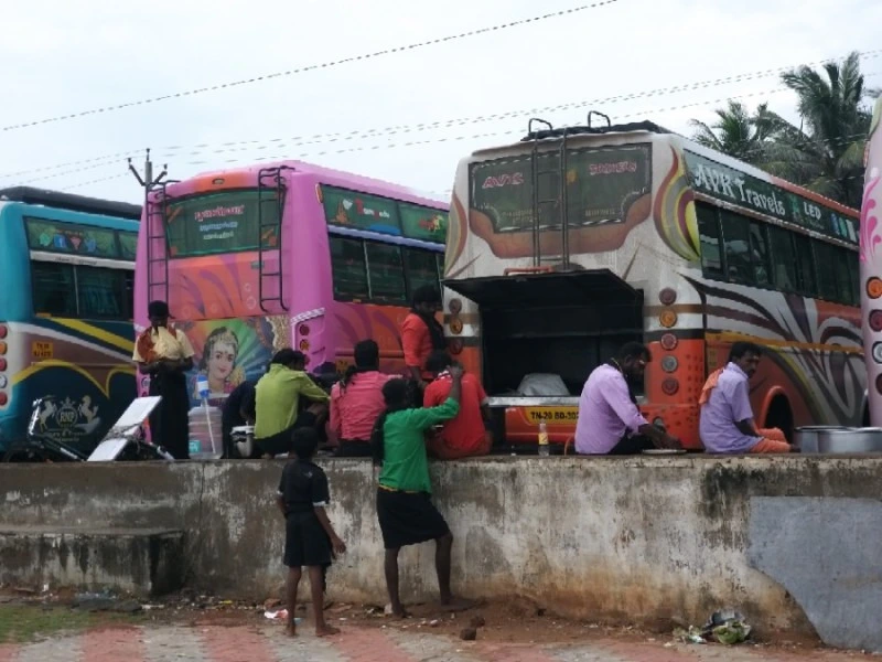 호텔 밖으로 내려와 봤다. 전날 저녁에는 안 보이던 단체 관광객들이 타고 온 듯한 대형 버스들이 해안 도롯가에 끝이 안 보일 정도로 길게 주차되어 있었다. 깐얀꾸마리가 힌두인들에게 어떤 의미인지 시각적으로 웅장하게 느껴졌다. 수많은 버스를 보니까 이제는 배가 뜬다 해도 우리가 탈 자리가 있을지 걱정이 되었다. 미모 대결이라도 하는 듯이 화려한 색깔로 개성각각 치장한 버스 구경이 재미있었다.