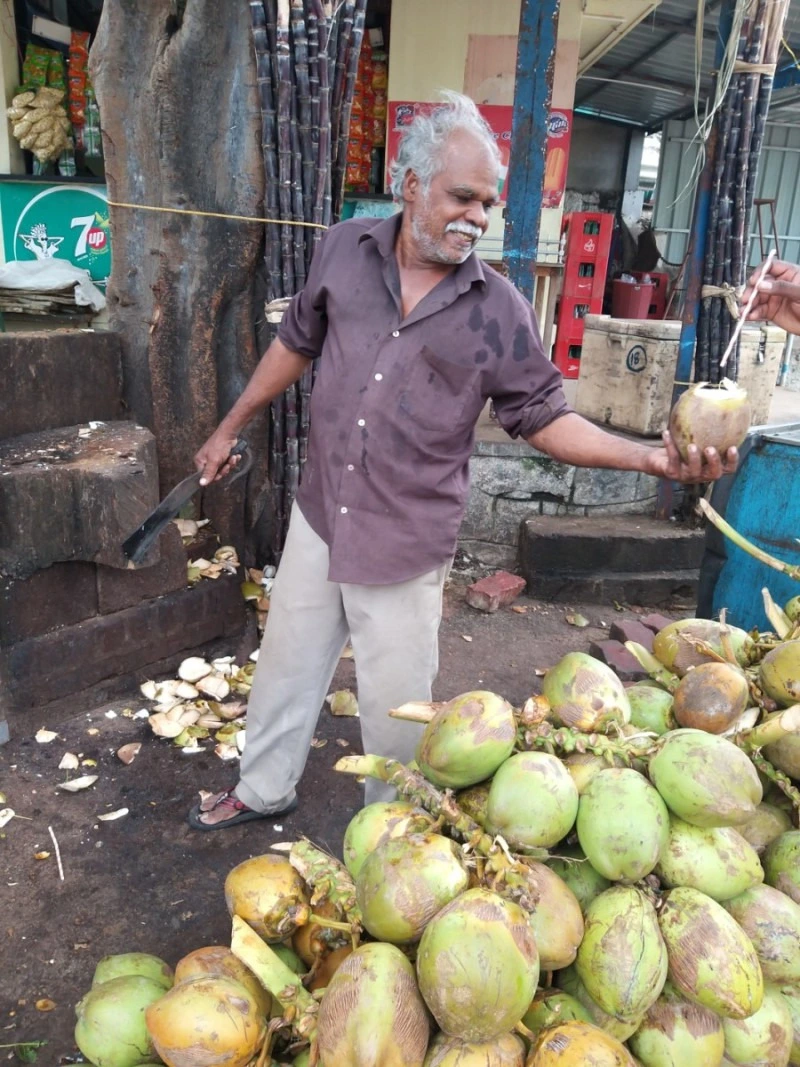 바위섬을 제법 오래 걸어 다녀서 갈증이 났는데, 마침 코코넛 상인이 보였다. 무섭게 생긴 칼로 내리쳐서 구멍을 낸 코코넛에 빨대를 꽂아서 단숨에 한통을 비웠다. 갈증에는 코코넛 주스만 한 게 없다.