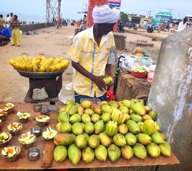 바람이 좀 잦아드는 것 같아서 배가 뜨는지 선착장으로 나가봤다. 타밀나두주 최대 명절인 그들의 추수감사절, 퐁갈(pongal)을 앞두고 큰 시장이 열렸다. 수많은 가게들과 상인들과 관광객들로 아침부터 시장 골목은 인산인해였다. 사람들 사이를 같이 걸으며, 시장 구경도 하며 바닷가로 나왔다.