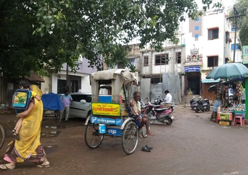마두라이도 마찬가지였다. 먼지 날리는 혼잡하고 시끄러운 도로와 도로변의 낡고 복잡한 상가 풍경이 너무나 익숙했다. 유독 검은 피부의 드라비다족 인도 여자들 대부분은 전통복장인 '사리'를 입었고, 남자들 중에도 긴 천을 반으로 접어 올려서 치마처럼 허리에 두른 '룽기'를 입은 모습이 많이 보였다.