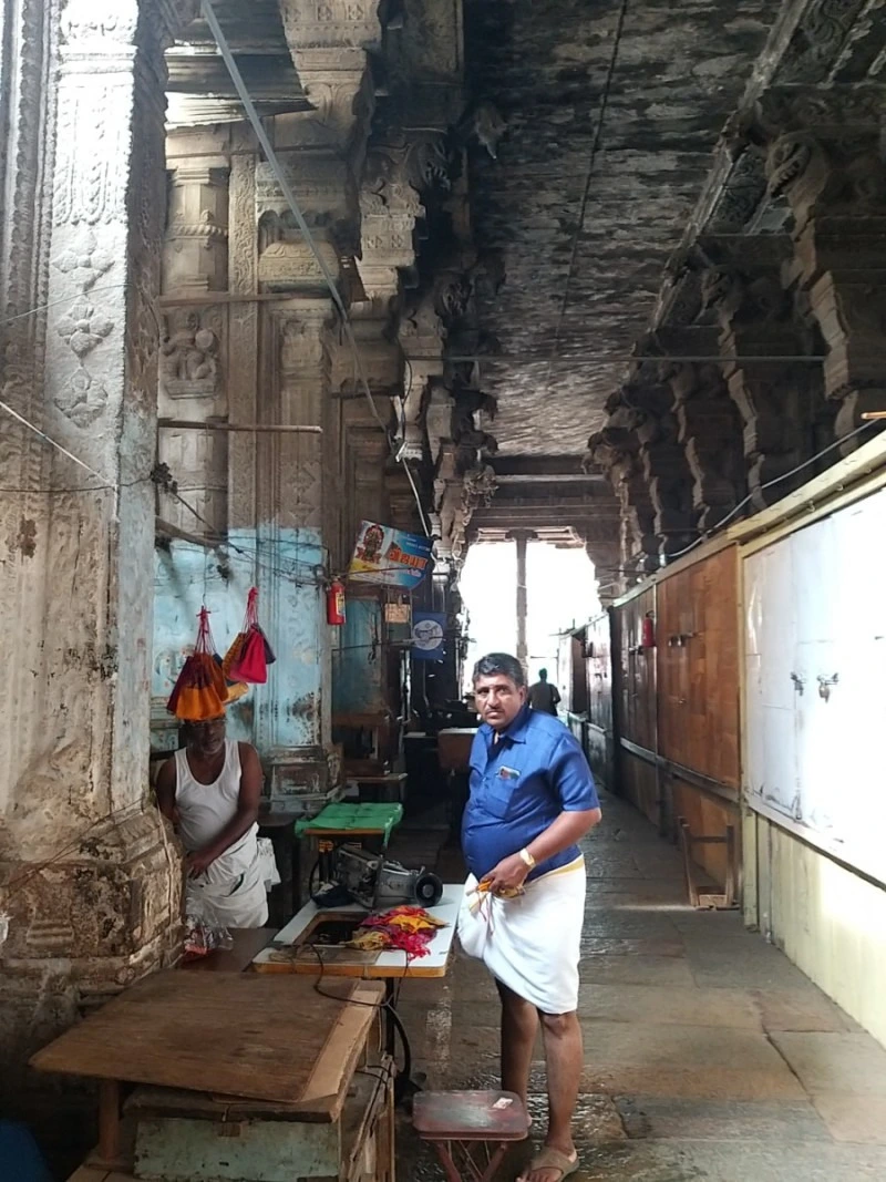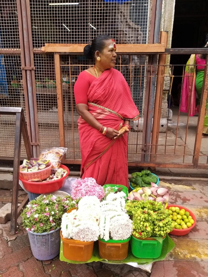매표소가 있는 쪽으로 걸었다. 템플 안의 신에게 바칠 꽃을 파는 노점상들이 많았고, 전통 복장 '룽기'만 입은 노인들이 많이 보였다. 인도에 오래 살았어도 웃통을 벗고 룽기만 입은 브라만 남자들의 전통 복장은 결코 편한 모습은 아니었다. 그곳이 일상생활공간이 아닌 힌두 템플 앞이었지만 여전히 그랬다.