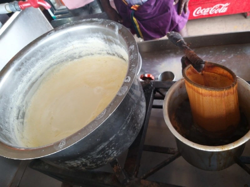 많이 먹어서 졸음운전을 할까 봐 같이 짜이(thai 인도 밀크티)를 마셨다. 짜이 장수 아저씨의 묘기 같은 짜이 붓기는 봐도 봐도 재미있었다. 이런 노점 짜이가 제대로 인 것 같았다. 생강향이 진하고 달고 맛있었다.