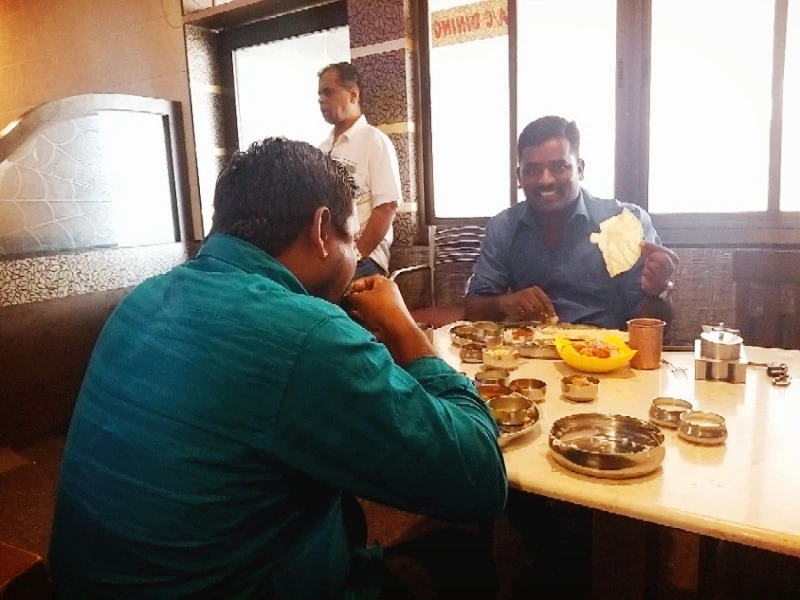 마두라이에서 첸나이까지는 약 7시간 거리였다. 그때가 오전 11시 30분경이었다. 조금 가다가 고속도로 휴게소에 들렀고, 베지테리언 식당에서 점심을 먹었다. 남인도 베지테리언들이 점심에 주로 먹는 밀즈(meals)와 빠니르 65(우유 단백질로 만든 두부를 치킨 65 소스에 버무린 음식)를 주문했다.