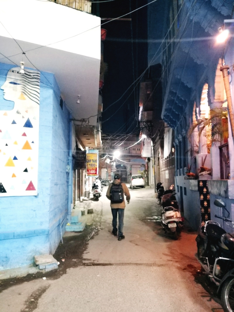 이제 호텔로 돌아가야 했다. 구글 지도를 켰더니 걸어서 5분 거리에 호텔이 있었다. 밤길이었지만 조드푸르도 그즈음에 익숙해지고 있어서 쉽게 호텔을 찾을 수 있었다. 일교차가 크다는 북인도였지만 생각만큼 춥지도 않았고 걷기에 더없이 좋은 늦가을 날씨 같았다.