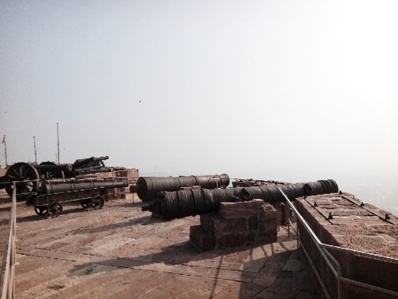 성의 내부는 거의 둘러본 것 같고, 이제는 요새로의 역할을 한 곳으로 나왔다. 병사들의 거처를 지나서 성벽 맨 꼭대기 넓은 정원을 한참 걸어가다 보면 힌두 템플도 보였고, 대포들도, 성벽에 뚫린 구멍들도 보였다. 메헤랑가르 'Fort'라고 하는 이유를 알 수 있는 장소였다.