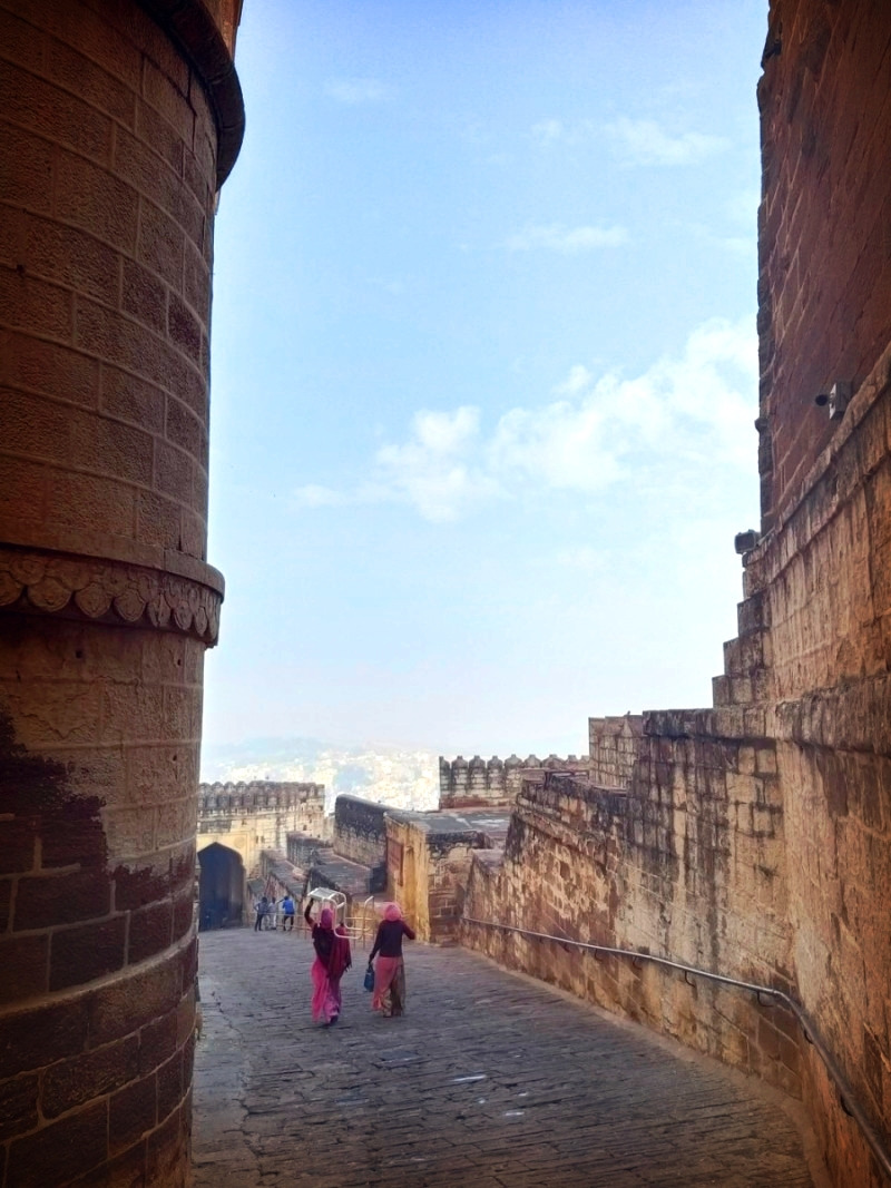 드디어 성 안으로 들어섰다. 정교하게 돌을 쌓아 올린 높은 성벽과 파란 하늘과 성 아래의 블루시티는 비현실적인 아름다움이었다. 단언컨대 내가 본 가장 웅장한 성이고 요새였다. 화려한 프랑스의 베르사유 궁전보다 예쁜 남인도의 마이소르 성보다 그때 이후로 나에게 웅장한 메헤랑가르 성이 최고가 되었다.