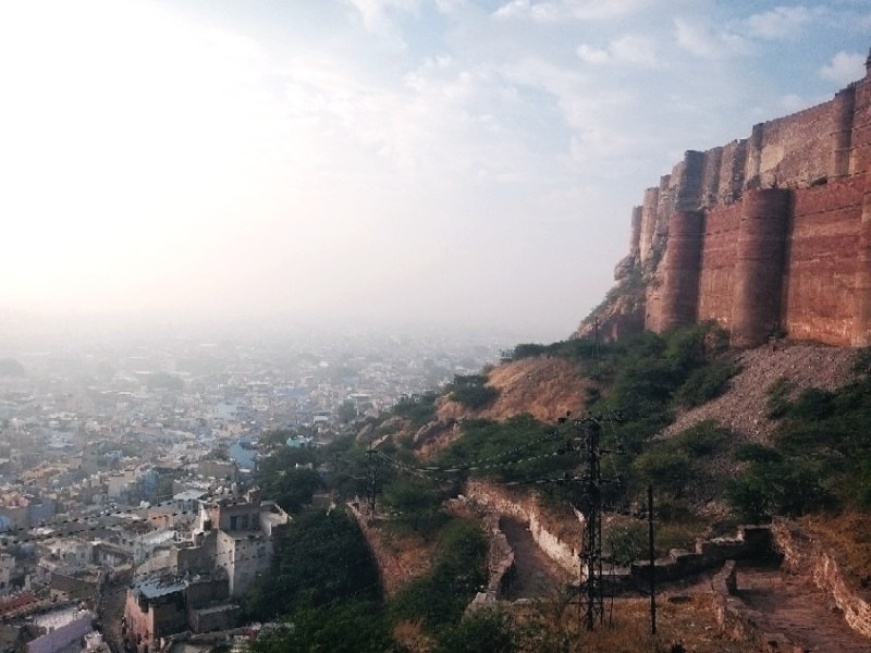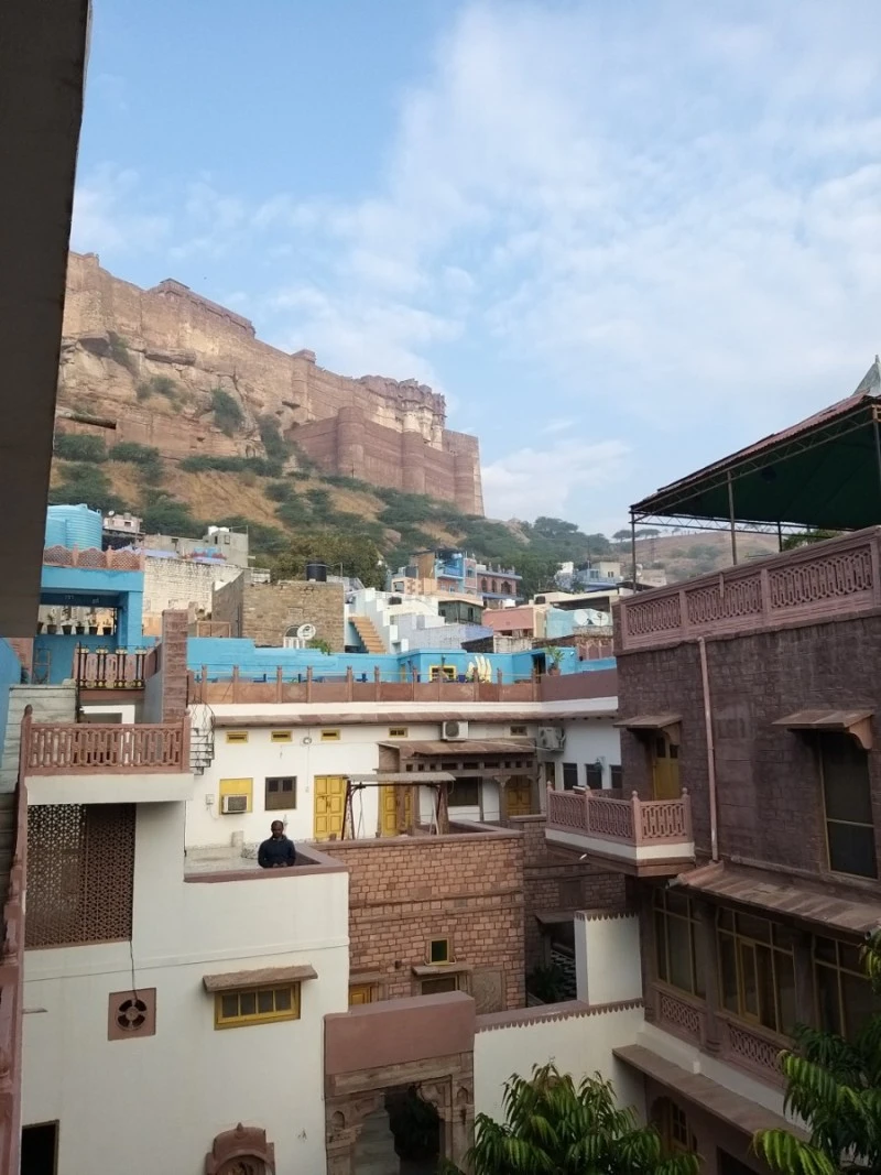 조드푸르의 날이 밝았다. 제법 쌀쌀한 아침 공기를 만끽하며 루프탑부터 올라가 봤다. 눈앞의 성벽은 높은 곳에 여전히 굳건히 자리하고 있었다. 조식을 먹고 커피잔을 들고 야외 테이블에 앉아서 차가운 공기와 뜨거운 커피와 웅장한 돌 성벽을 함께 즐겼다.