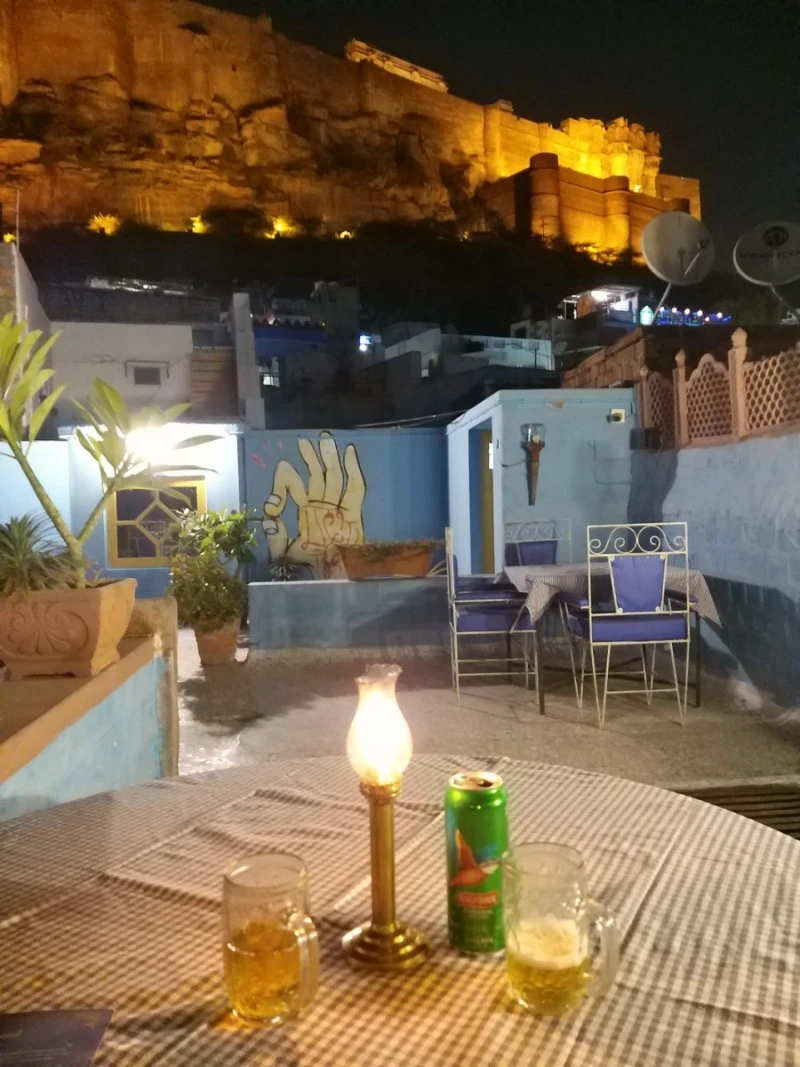 그냥 잘 수는 없었다. 루프탑 테이블에 인도 맥주 '킹피셔' 한 캔을 앞에 두고 그 야경을 충분히 즐겼다. 우리와 같은 마음인 서양 관광객들도 제법 보였다. 더운 첸나이에서 올라간 우리는 싸늘한 조드푸르 밤공기마저도 너무 좋아서 그네 의자에 흔들흔들 앉아서 고양이와도 오랫동안 시간을 보냈다. 운치 있는 분위기 덕분에 행복한 밤이었다.
