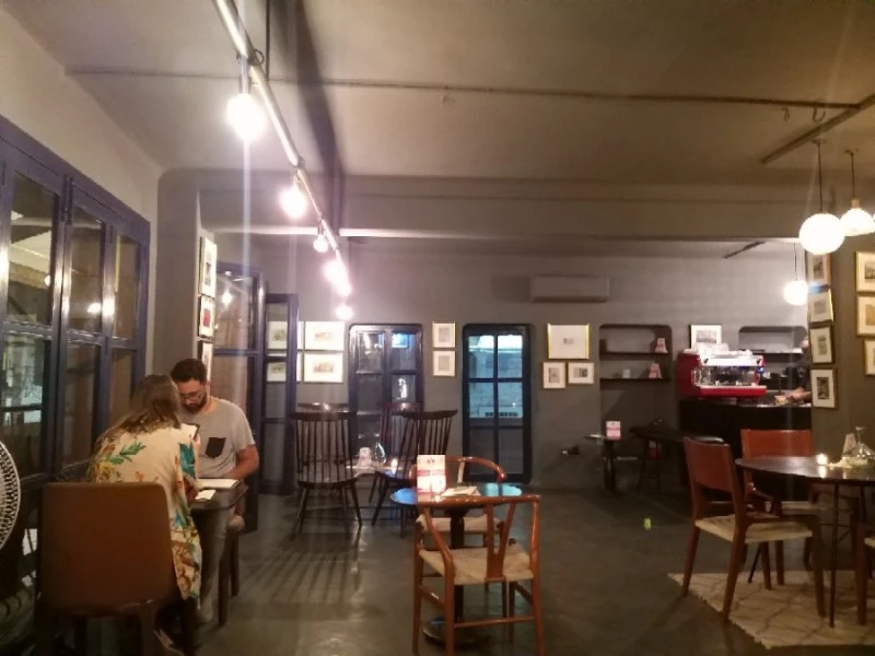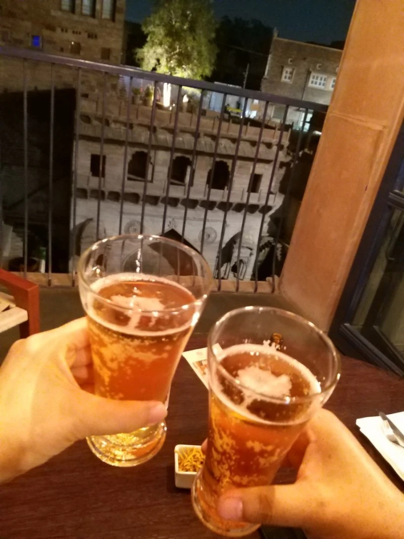 우물을 둘러싸고 있는 많은 카페들 중에서 우리는 계단 골목을 올라서 가장 높은 곳에 있는 카페로 들어갔다. 계단식 우물을 내려다보며 맥주 한 잔 하기 좋은 곳이었다. 우물 쪽 창가에 자리를 잡았다.