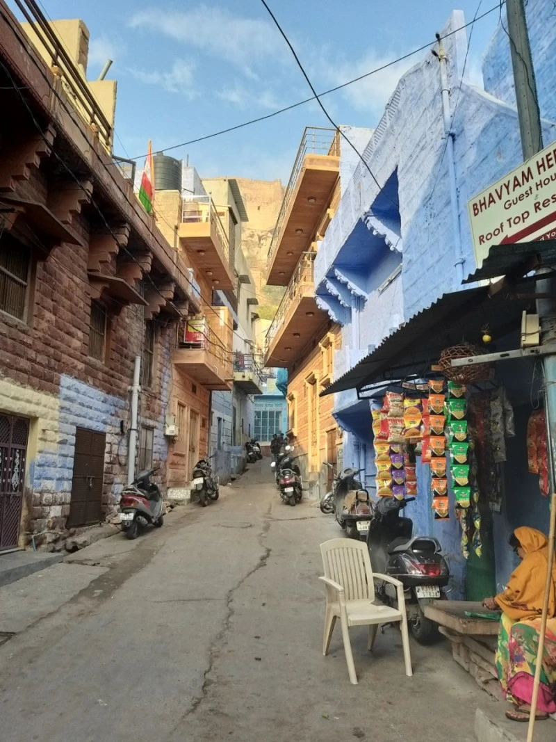 메헤랑가르 성의 아름다움이 아직도 눈에 선하고, 여전히 가슴은 벅찬 상태였지만 그것과는 별개로 성 아래 서민들의 집들도 알록달록 내 눈에는 너무 예쁜 풍경이었다. 이건 이거대로 저건 저거대로 다른 아름다움이 있었다.