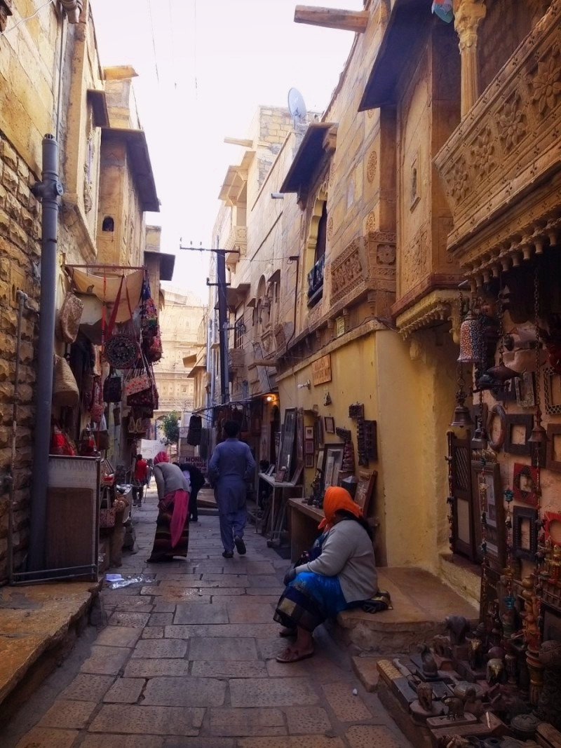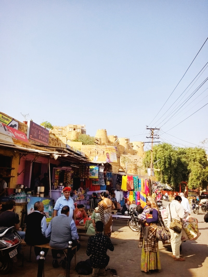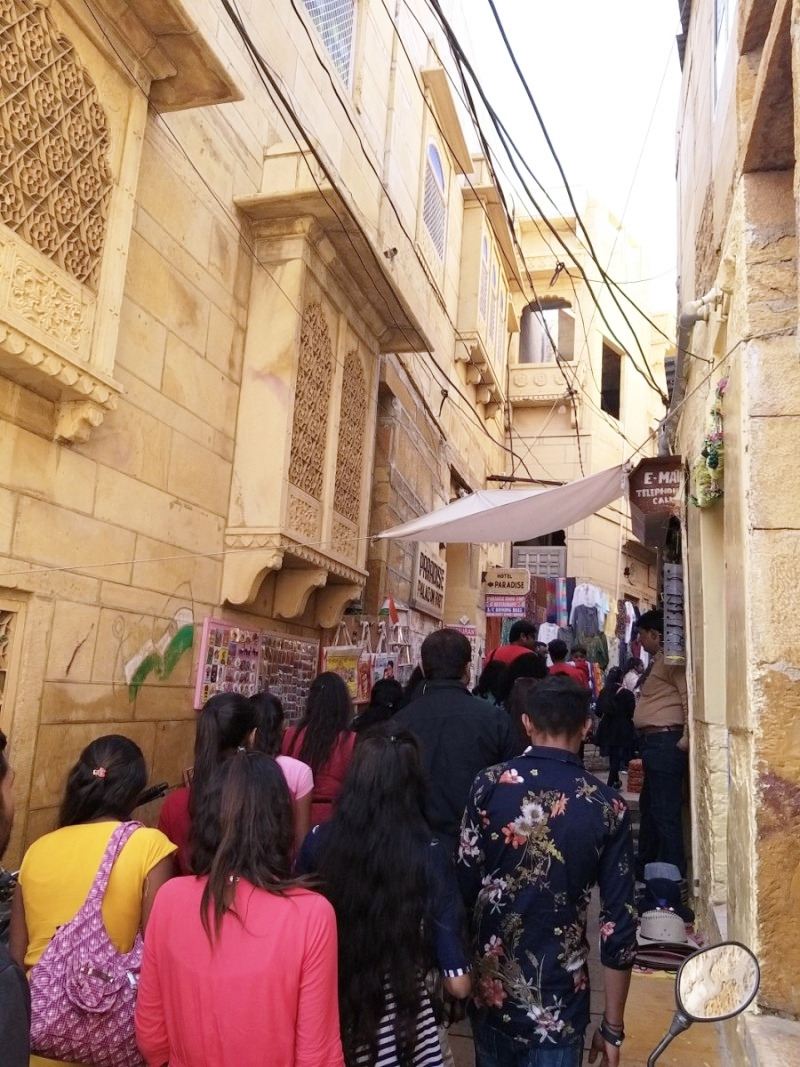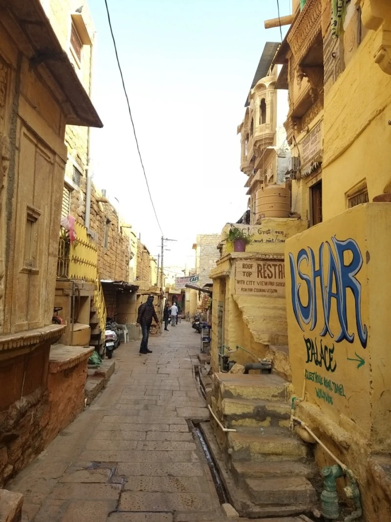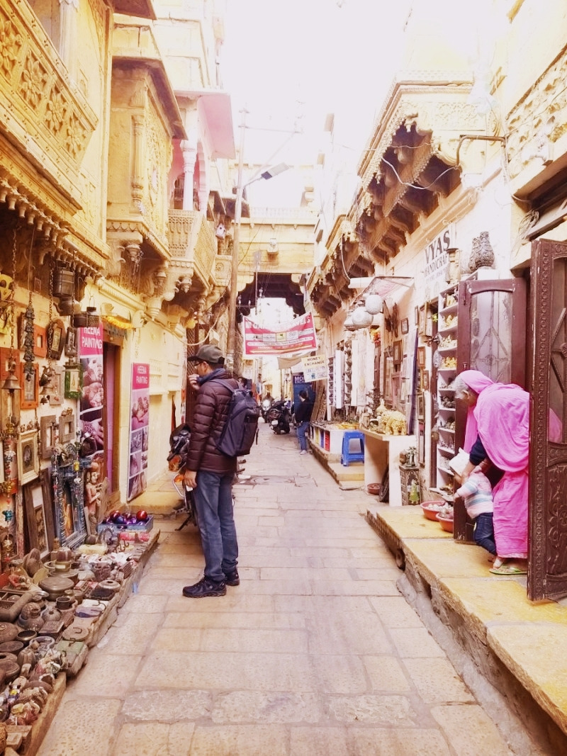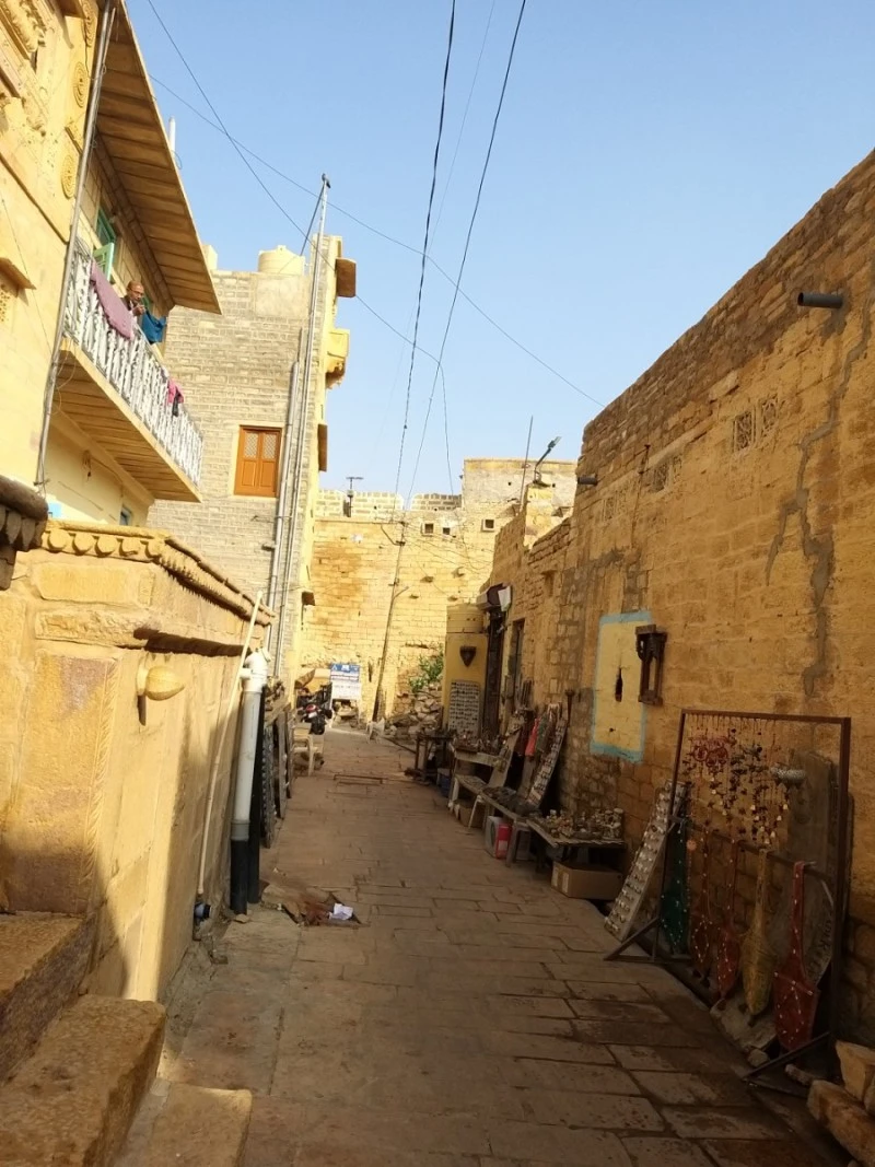 자이푸르의 화려한 외벽의 '하와 마할'과 조드푸르의 웅장하고 멋있었던 '메헤랑가르 성'을 먼저 보고 넘어왔던 우리는 사실 큰 기대는 하지 않았다. 외벽의 생김새가 너무 소박하고 평범해 보였던 자이살메르 성이었다. 호텔에서 나와서 쉬엄쉬엄 걸어서 성 구경에 나섰다.