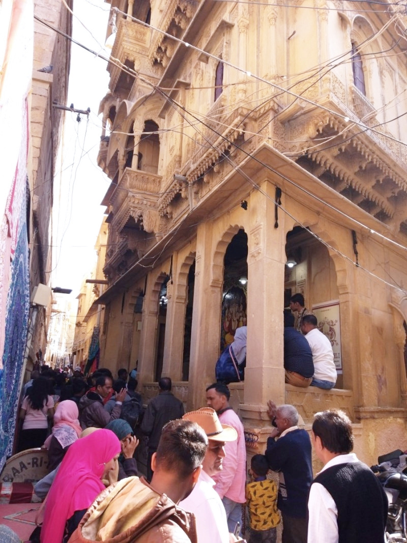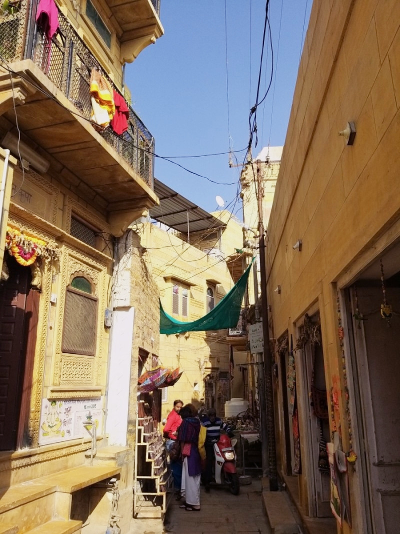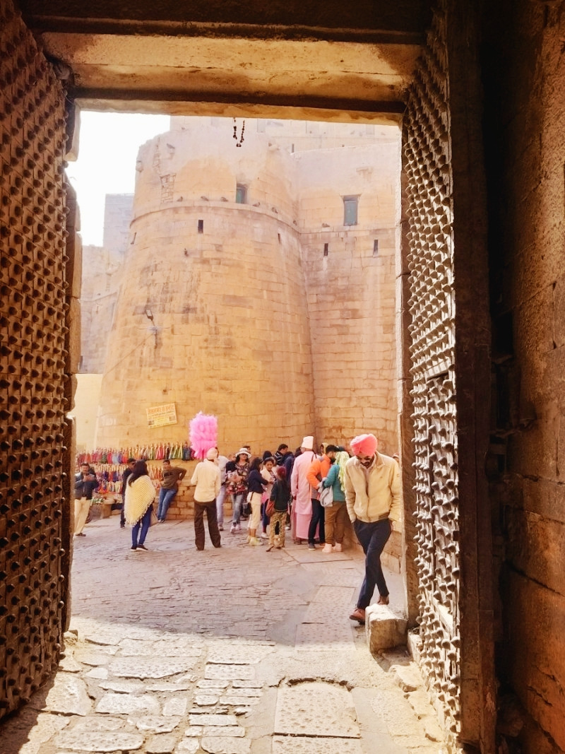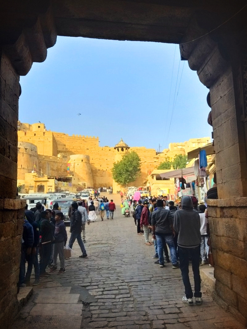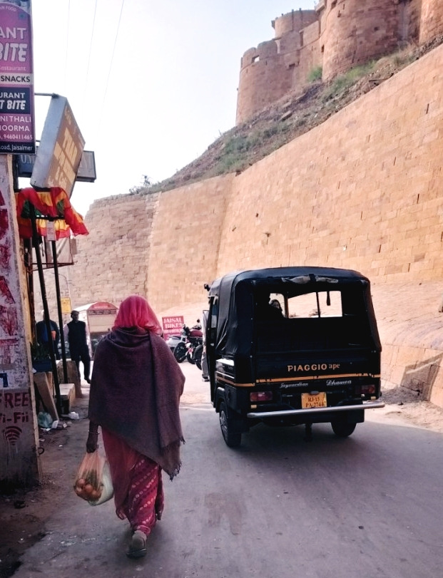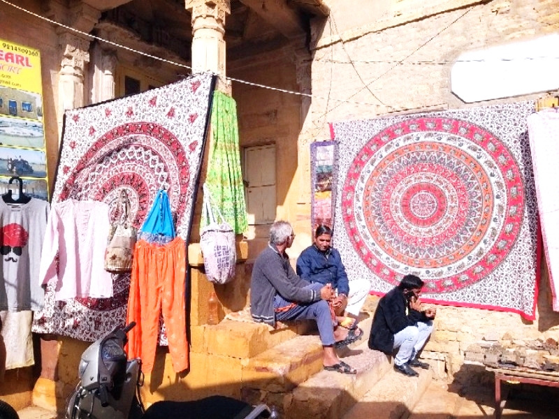 자이푸르의 화려한 외벽의 '하와 마할'과 조드푸르의 웅장하고 멋있었던 '메헤랑가르 성'을 먼저 보고 넘어왔던 우리는 사실 큰 기대는 하지 않았다. 외벽의 생김새가 너무 소박하고 평범해 보였던 자이살메르 성이었다. 호텔에서 나와서 쉬엄쉬엄 걸어서 성 구경에 나섰다.